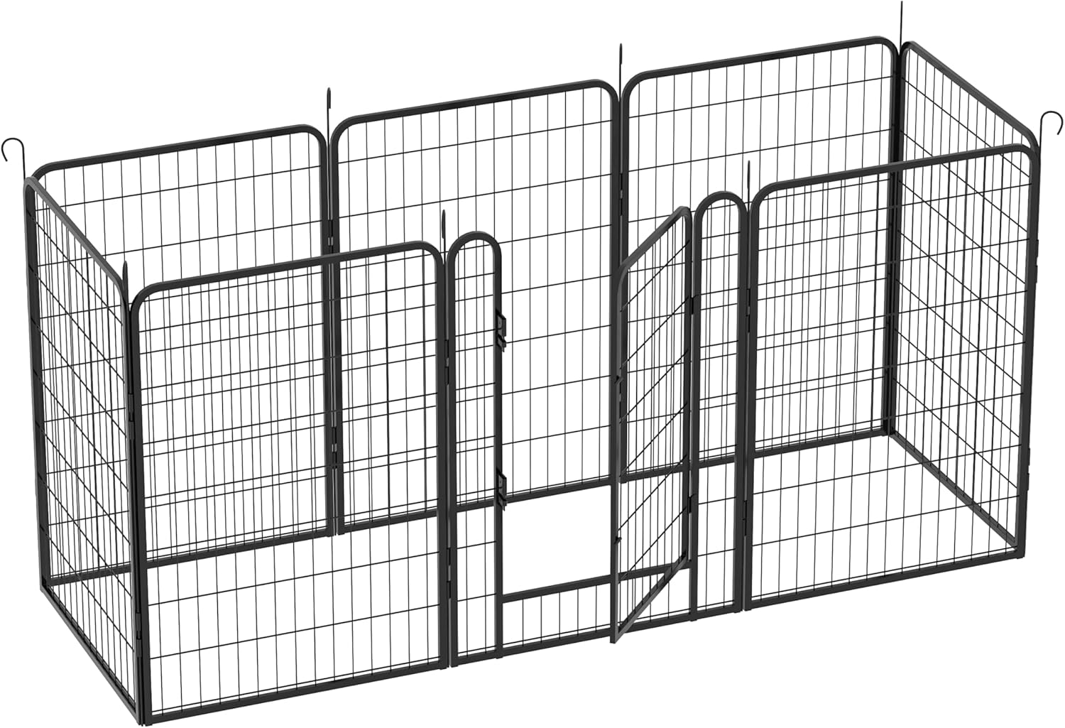 - 🐶𝗩𝗲𝗿𝘀𝗮𝘁𝗶𝗹𝗲 𝗦𝗵𝗮𝗽𝗲 𝗢𝗽𝘁𝗶𝗼𝗻𝘀:Our outdoor dog fence panels are 28'' wide and 40'' high, including 8 panels and 1 gate, allowing you to set it up in various shapes like circles or rectangles to suit your space and your pet's needs. This tall dog playpen is ideal for small, medium, and large animals, and the 40'' height ensures their safety