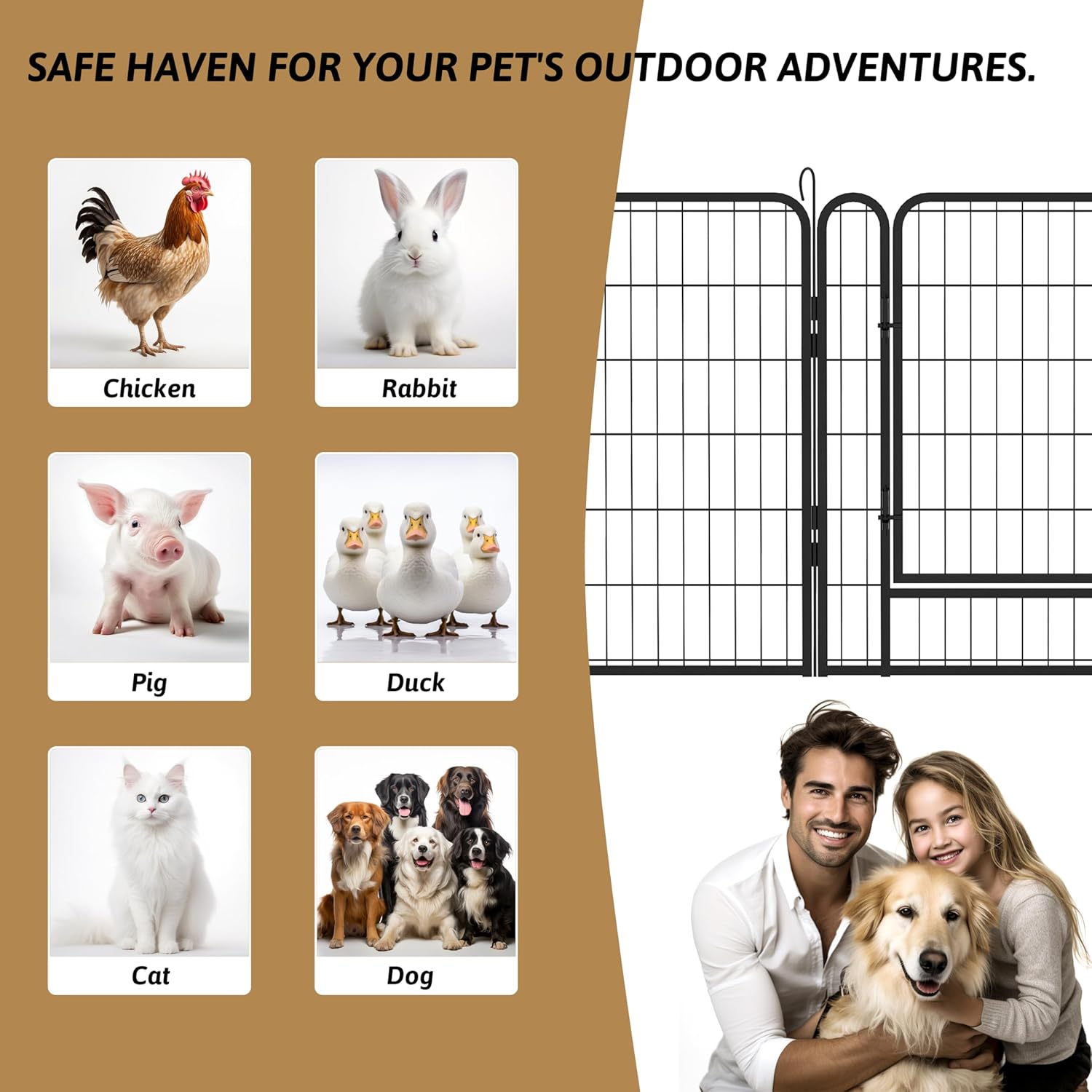 - 🐶𝗩𝗲𝗿𝘀𝗮𝘁𝗶𝗹𝗲 𝗦𝗵𝗮𝗽𝗲 𝗢𝗽𝘁𝗶𝗼𝗻𝘀:Our outdoor dog fence panels are 28'' wide and 40'' high, including 6 panels and 1 gate, allowing you to set it up in various shapes like circles or rectangles to suit your space and your pet's needs. This tall dog playpen is ideal for small, medium, and large animals, and the 40'' height ensures their safety