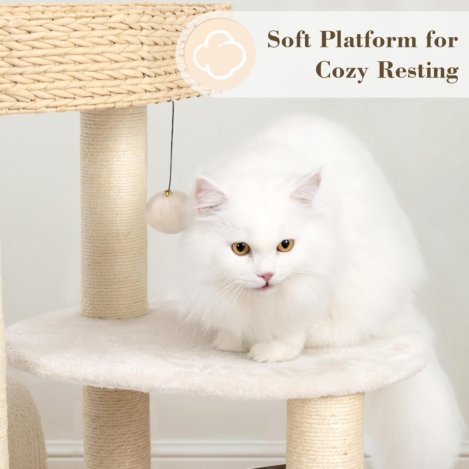 - 🐈 High Quality Materials: Hand-woven condo & top perch with cushion is comfortable, breathable and cool. The plush platform provides a comfortable place for cats to relax or play. A great Chrismas gift for your lovely cat.