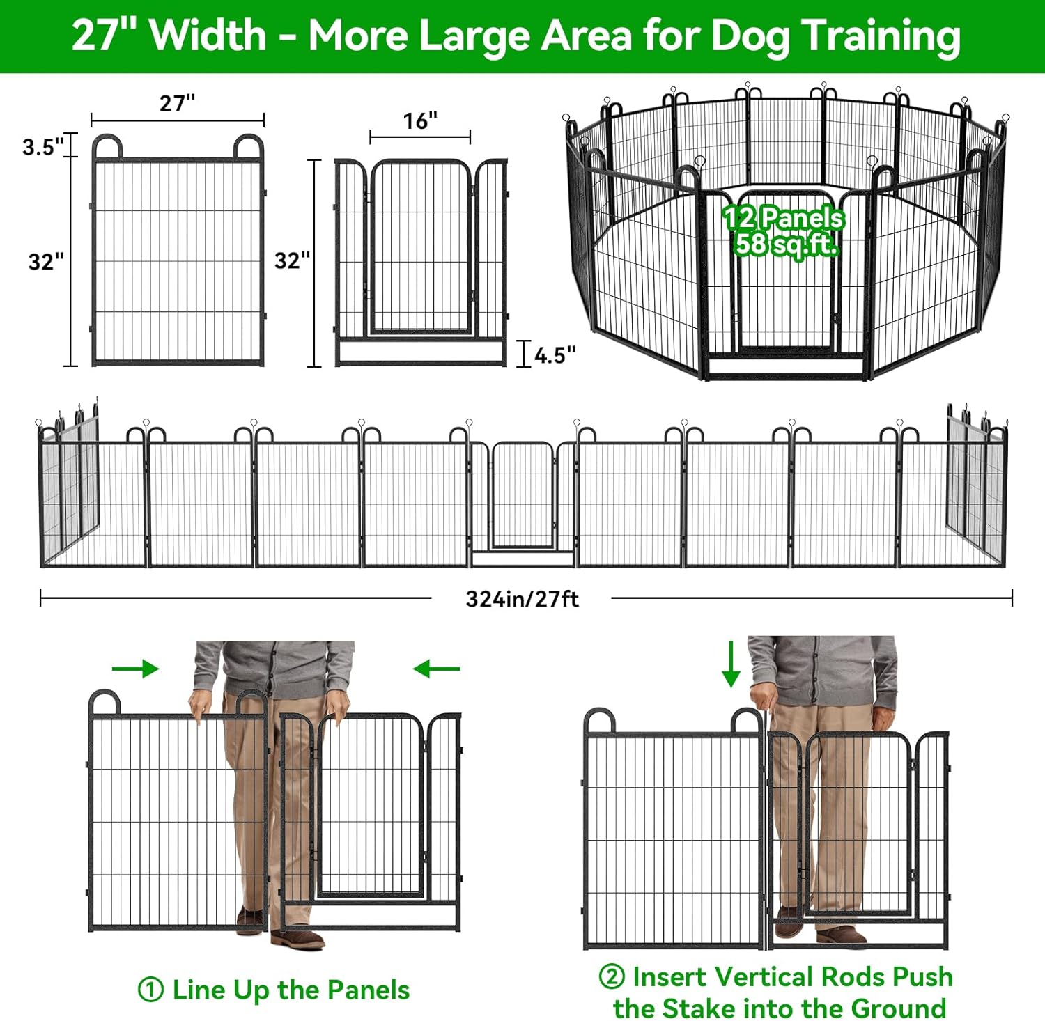 - 【Easy to Set Up & Multiple Combinations】The panels come with individual poles to connect them together, easy to set up or take it down in minutes, dog fence can do multiple combinations and configurations, dog playpen for the yard easily conforms to different shapes according to your garden or room, circle, polygon, irregular, etc