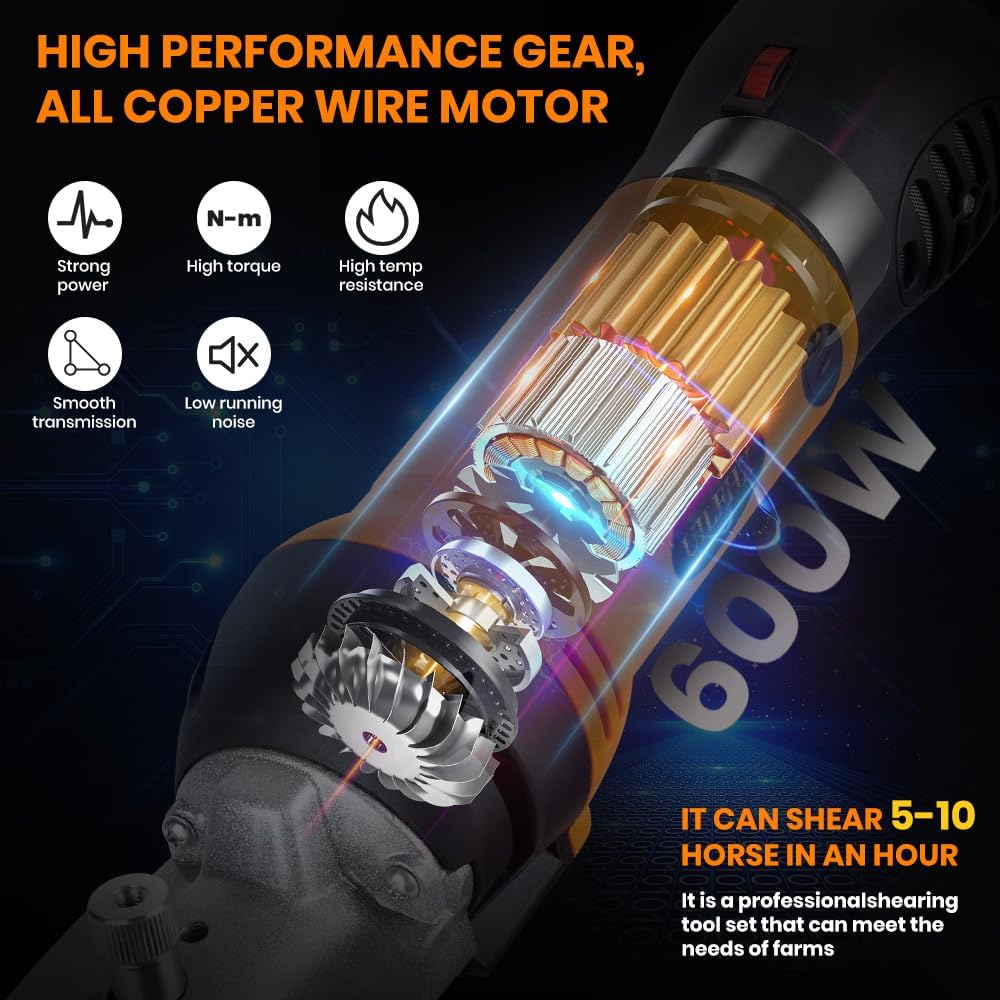 - 6-SPEED CONTROL: The UILFHX professional shears are equipped with 6 variable speed knobs, so whether you are a beginner or a professional, the 6-speed control will help you get the job done quickly and easily. The low speed (1-3) provides precise performance for clamping sensitive areas, such as body parts like the neck and legs of horse, while the high speed (4-6) provides maximum power for faster trimming and full body shaving.