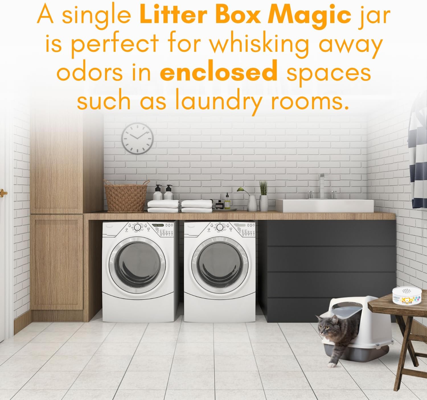 • HIGH-QUALITY LITTER BOX ODOR ABSORBER INGREDIENTS - Our cat litter smell eliminator is crafted with the best ingredients that effectively neutralize litter box odor. Each component is carefully selected for its proven ability to eliminate unpleasant smells, ensuring your home stays fresh and clean. Our formula is safe and powerful, absorbing unwanted odors at the source. Experience a cleaner, fresher space with Litter Box Magic’s litter box odor control power!