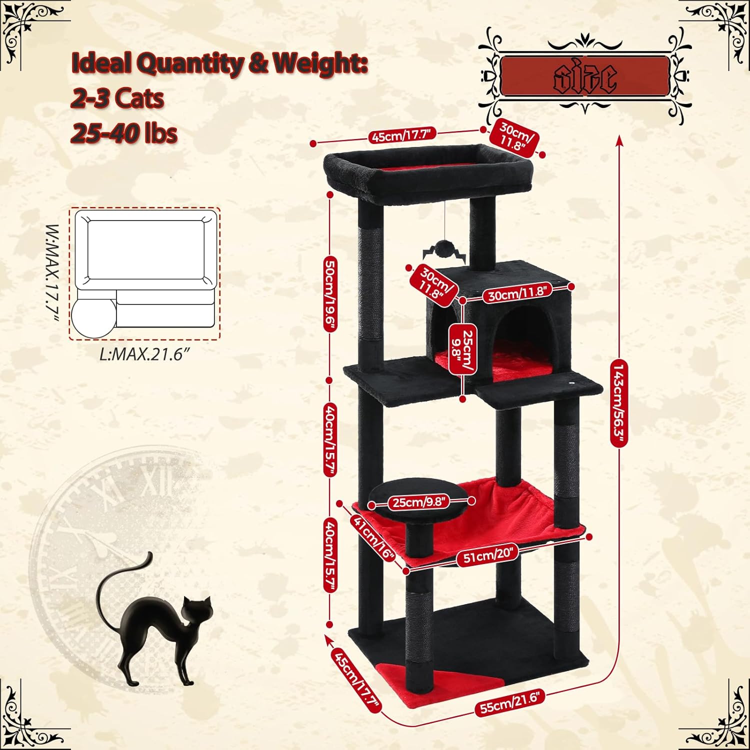 - Ultimate Activity House: Equipped with a roomy condo, spacious hammock, cozy plush top perch, natural sisal covered scratching posts and fluffy dangling ball, this 56.3’’ cat tree is an ideal place for entertaining as well as taking a good rest. Your frisky kittens could easily jump up and down with the assist of the round pedal and step-like layout