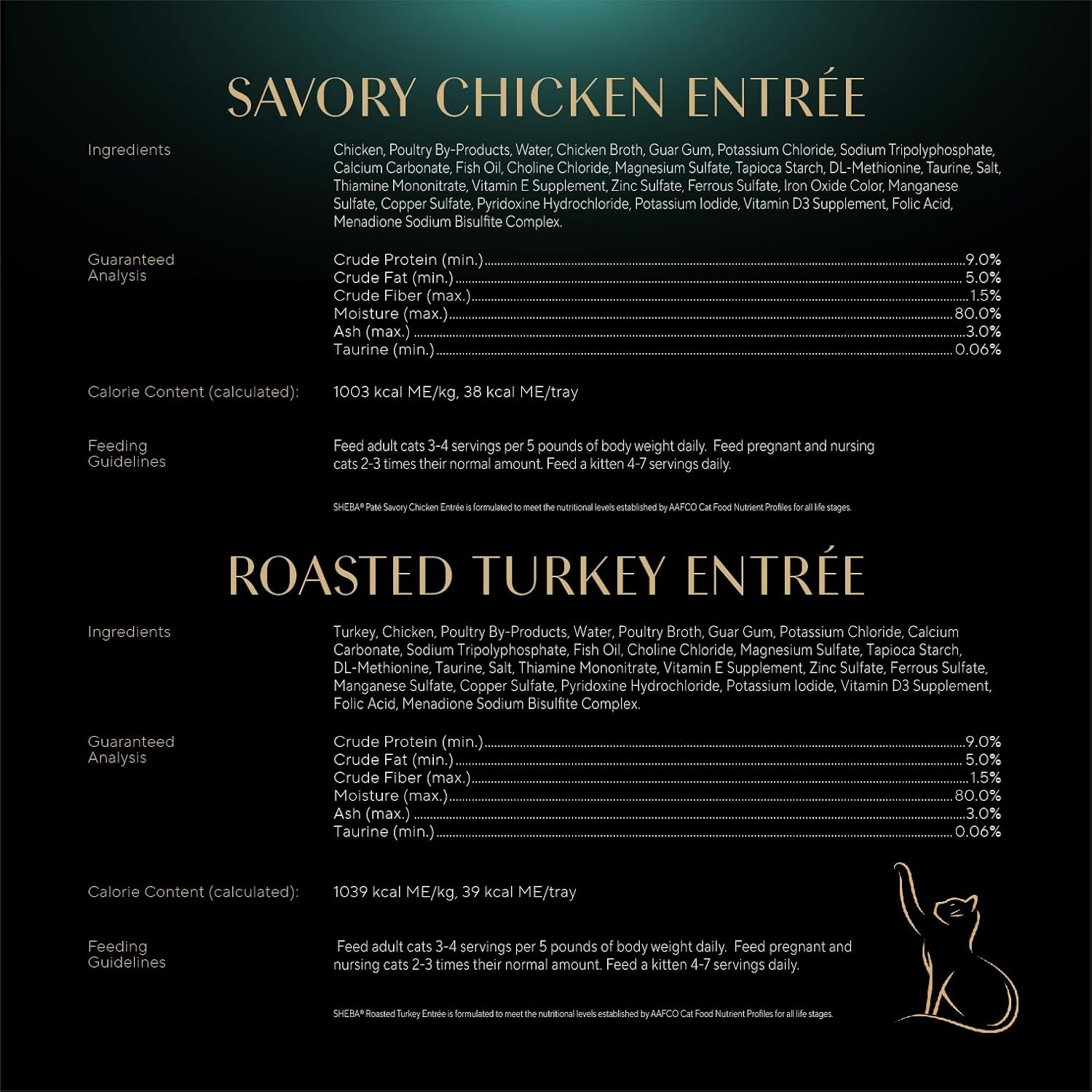 - Delicious Recipe: Sheba Perfect Portions Paté Wet Cat Food is grain-free and contains no artificial flavors or preservatives; trace amounts may be present due to cross-contact during manufacturing