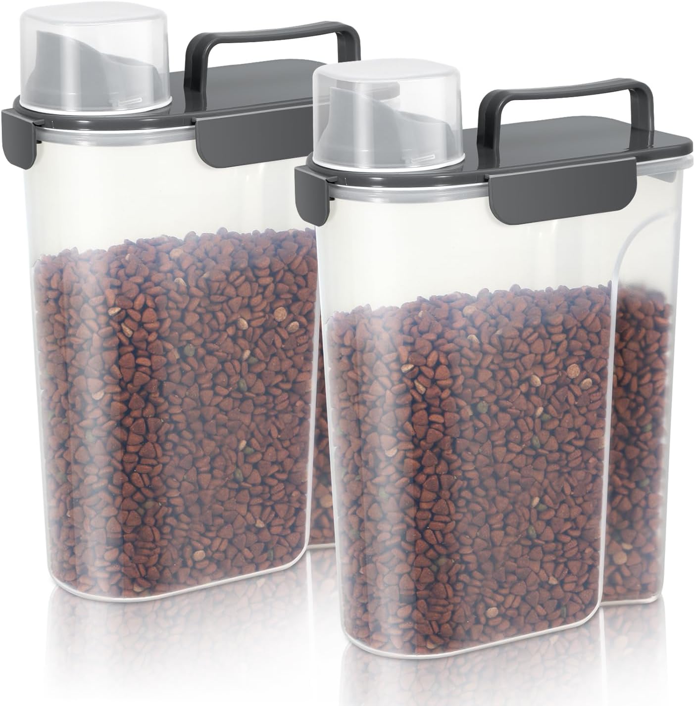 - WHAT YOU GET?:The small dog food bin comes with a 1-pack airtight pet food storage container with a clear measuring cup and an upgraded large spout for easy pouring of pet food at any time. This dog food storage containers can be a gift The perfect gift for any home.