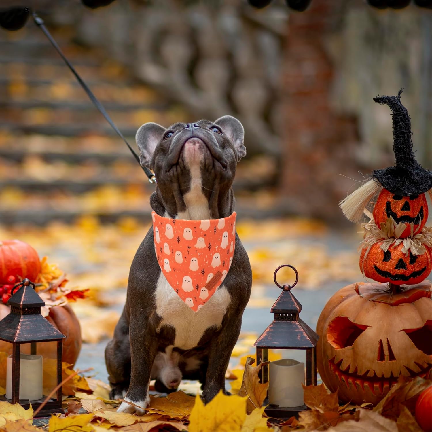 - Halloween Dog Bandanas: These halloween bandanas are designed with orange and yellow color, classic halloween elemets such as pumpkin, ghost, Full of halloween atmosphere your pets will become stylish and attractive when wearing them during halloween season.