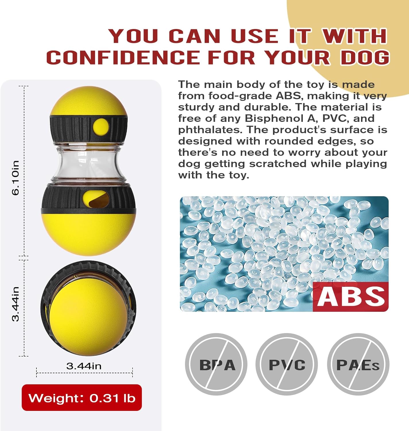 - Adjustable Food Dispensing Function: You can rotate the toy's food holes to adjust the slow feeding time and guide your dog to adapt to the new eating time step by step.