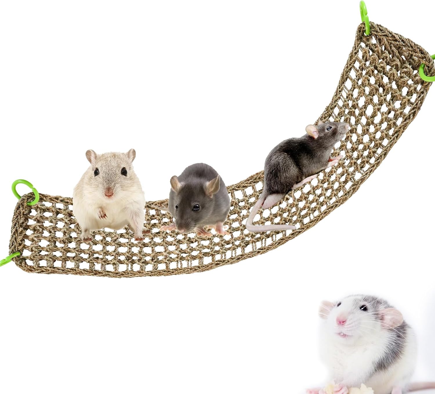- Cage Accessory: Based on the small animal's seagrass mats hammock, You can add some toys or snacks your pet like, to build their playgrounds, exercise their coordination and balance ability, and enrich their cage life. You can also choose to curl or fold the seaweed pad to build a shelter for small animals.