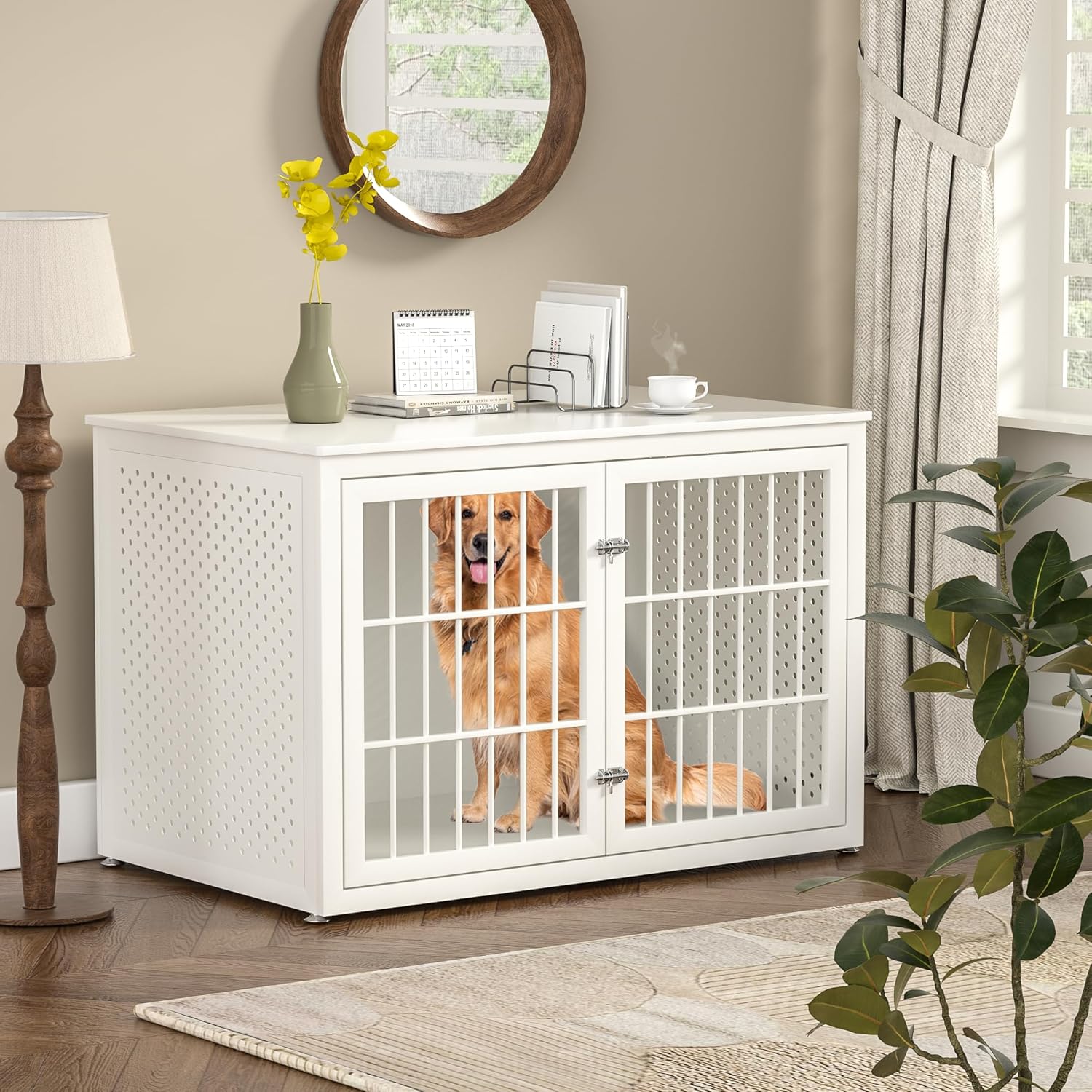 - 【Furniture-Style】: This dog crate can be used as an End Table that seamlessly blends with your home decor. It serves as elegant furniture while providing your pet with a secure retreat.
