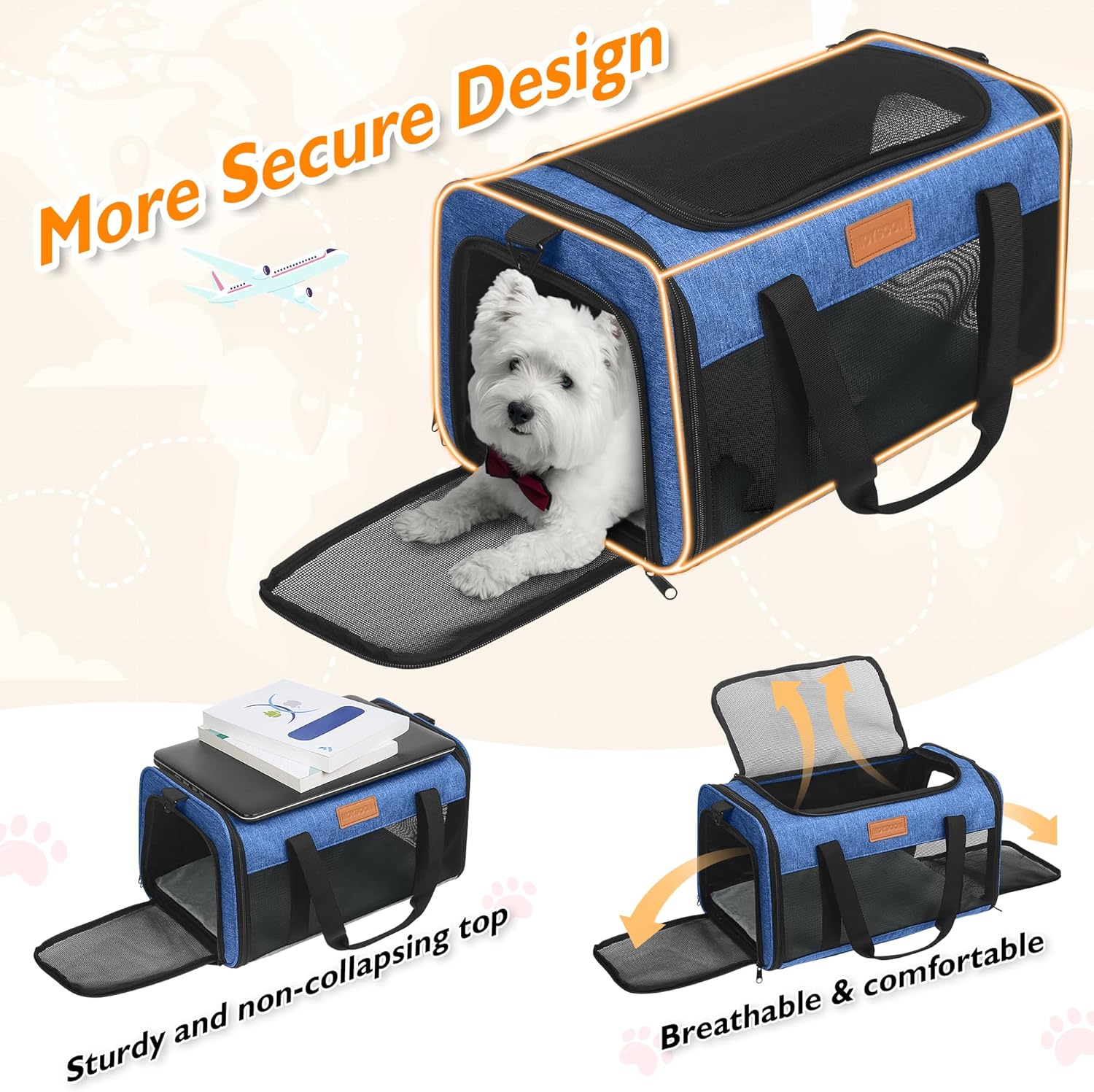 PETUX TSA Approved Pet Carrier in Cabin, 17"x11"x9.5" Soft Cat Carriers for Small Cat up to 12 lb and Puppy up to 10 lb, Top Open Portable Pet Carrier Airline Approved for Travel and Vet Visit (Blue)