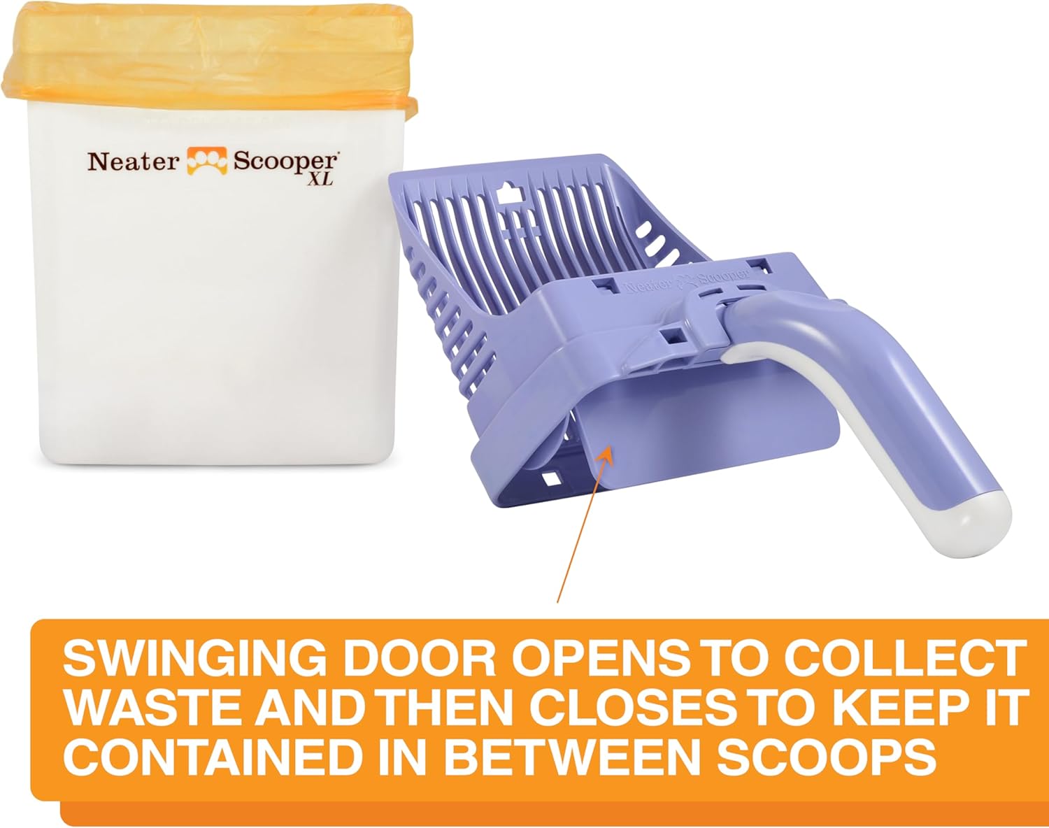- REFILL BAGS & DISPENSER INCLUDED: Includes 195 lavender-scented refill bags and a dispenser that attaches to your litter box. The bags are larger than standard pet waste bags and custom-fit for the Neater Scooper XL. For refills, choose orange Neater Scooper XL refill bags for a perfect fit.