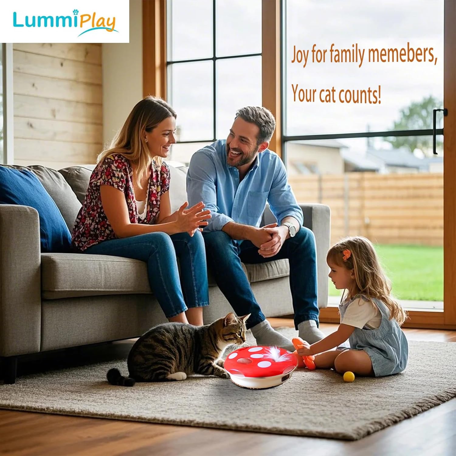 - 【Automatic Interactive Cat Toy with Rotating Feathers】2 feathers pop out randomly from the holes on the top and side, the unpredictable movements attract the cat's attention and stimulate your cat's instric for hunting, also encourage your cats to do exercises, strongly recommended for over weight cats