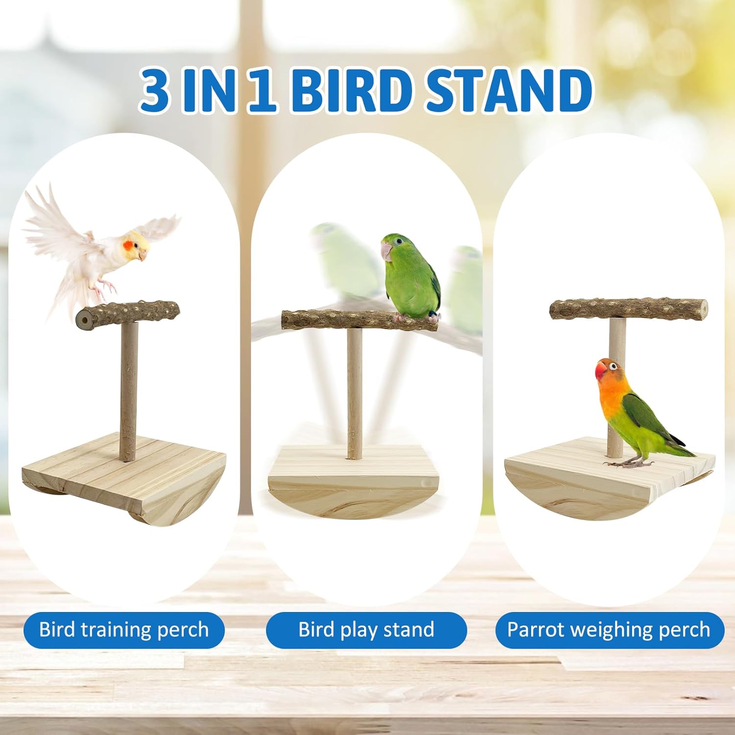 - NATURAL MATERIALS: Our bird perches is made of pine and pepper wood; it is bird-friendly; the surface of the T-bracket is uneven; it has a natural texture; it is suitable for birds to sharpen their claws and beaks; the T-bracket is securely fastened to the base by metal screws; it ensures the stability of the overall structure; we have also adopted a hidden screw design; there is no unsafe place for chewing on the whole bird stand; it will not be unsafe for pets