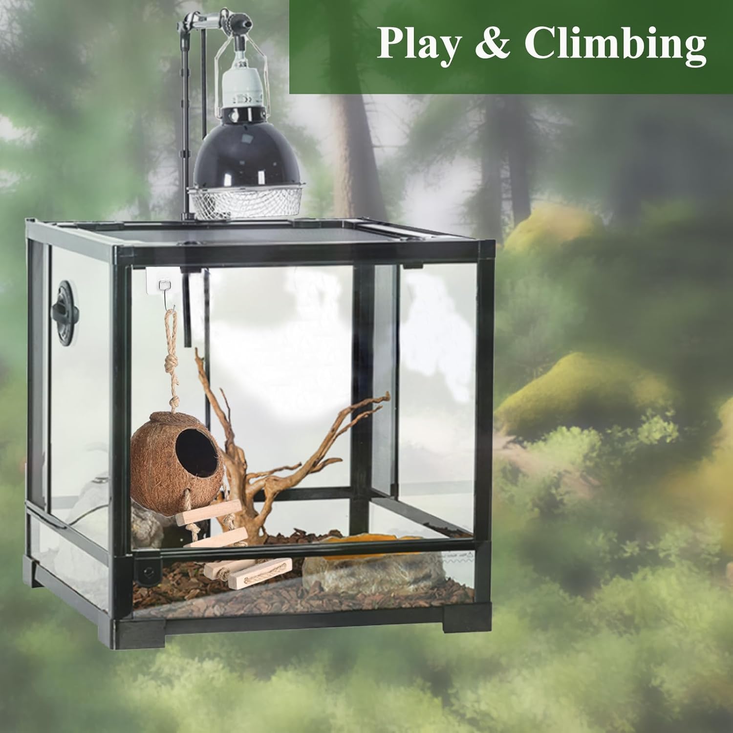 - 【Climb Ladder】The coconut shell nest provide a relax and recover place for lizards, they can isolates loud sounds, activity and bright light. Reptiles climb and play the ladder can release excessive or anxious energy to relieve stress.