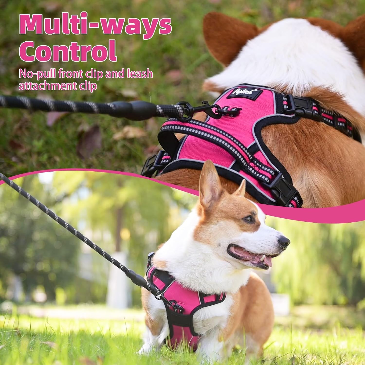 - REFLECTIVE SAFETY STRIP: This dog harness features reinforced stitching for added toughness. Multiple reflective strips improve visibility. Suitable for a variety of occasions and can be used for a variety of activities such as daily walks, running, hiking, and training. Keeping your dog safe on night walks