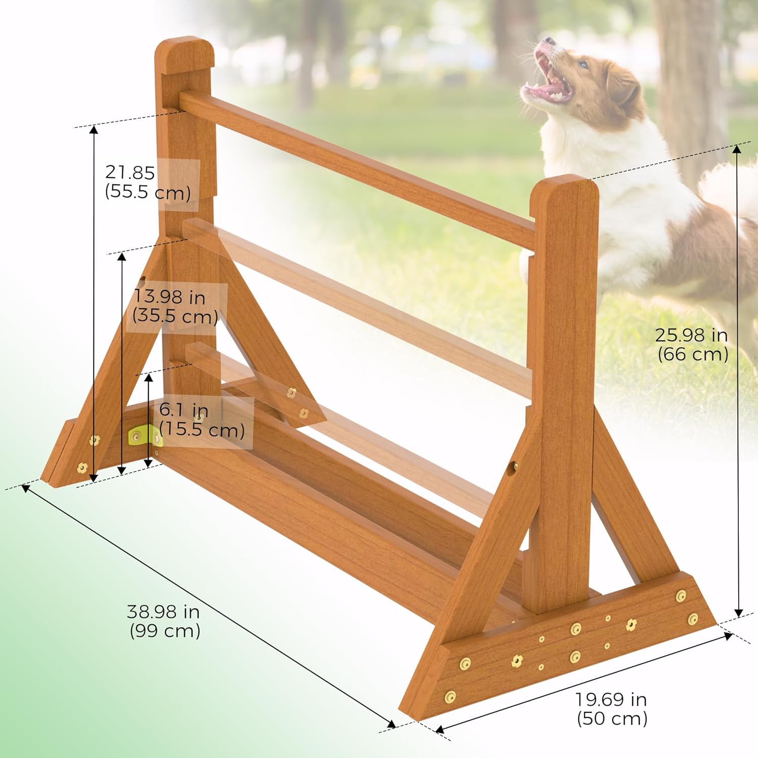 - Sturdy and Reliable Construction: Suniboxi dog agility training equipment is made of fir wood .The solid wood pieces give it some heft so it won't be knocked over easily. And the design of the bottom triangle also increased stability at the same time ensures safety and reliability during use.