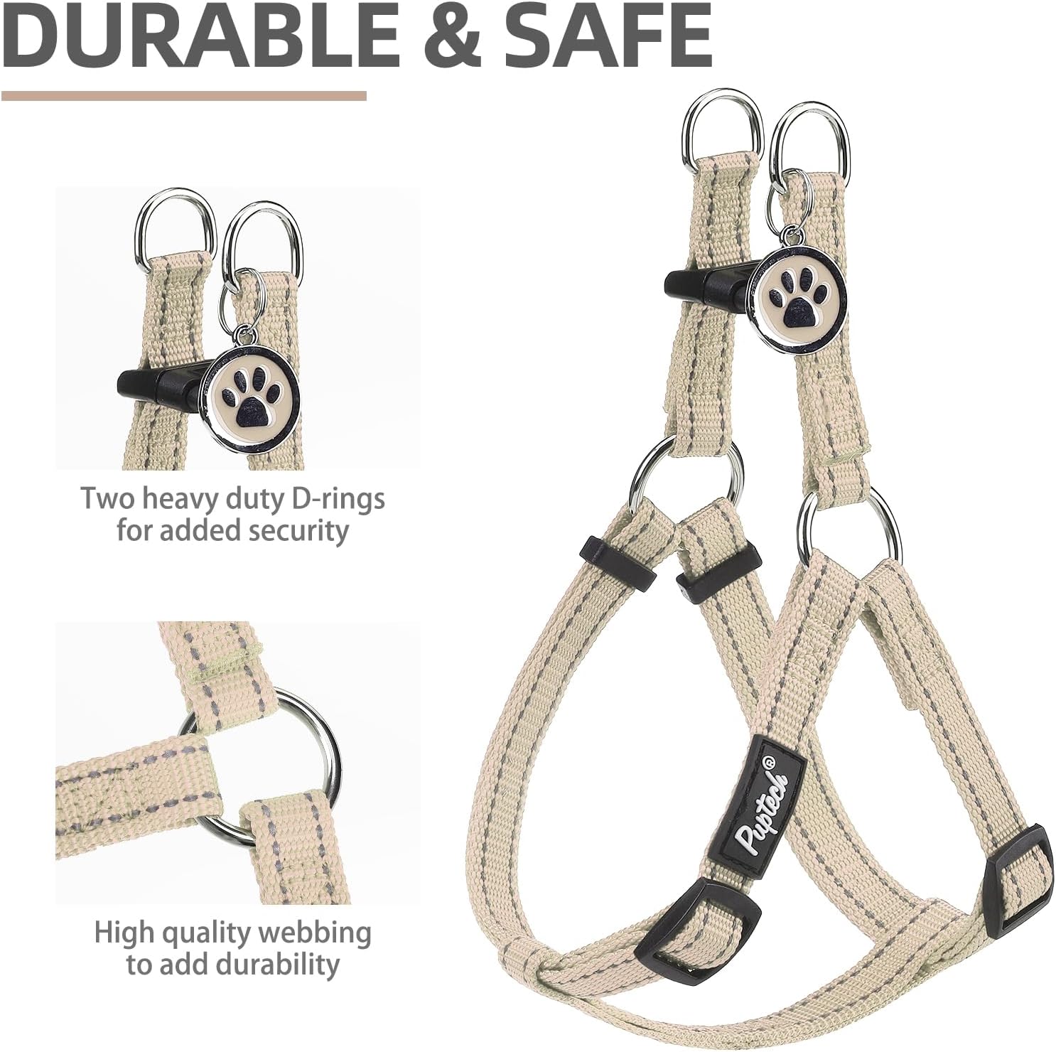 - [Durable & Comfortable Material] - High-quality nylon fabric with high-density webbing to add durability. The webbings have been widened, and the surface is very smooth, so the harness's comfort will be better. Your dog will enjoy the daily walk in this comfortable dog harness!