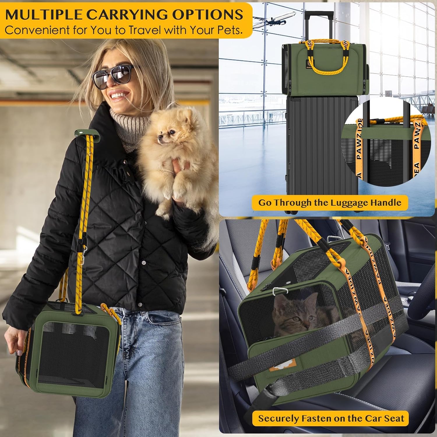 - Easy Access and Superior Ventilation: Designed with top load pet carrier and independent openings on both sides, plus an upgraded independent small door, making it effortless for your pet to enter and exit freely without the carrier collapsing. All anti-scratch mesh provides excellent visibility and air circulation, keeping your pet stays comfortable and calm.