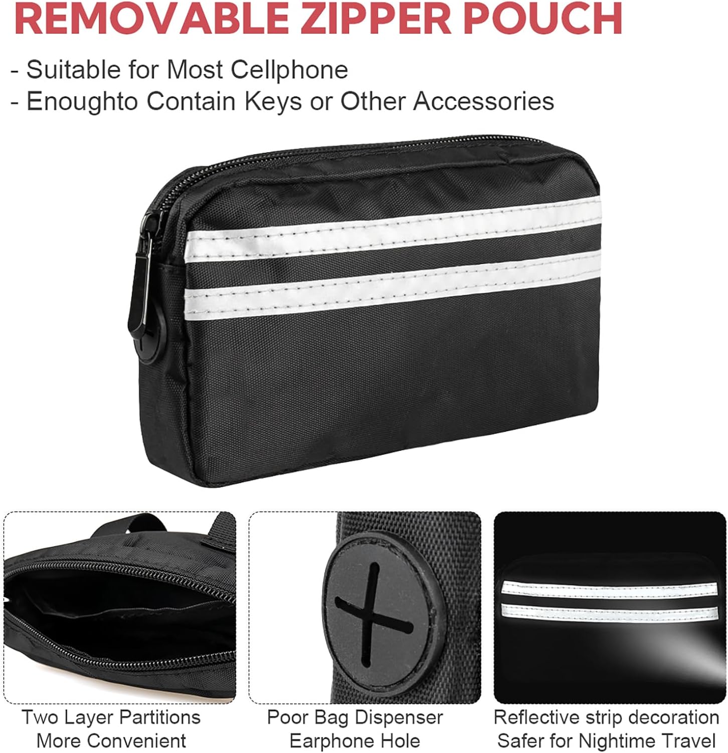 - Multifunctional Dog Walking Bag: This dog walking fanny pack has perfect size so, it's super nice to put your phone, poop bags, treats and house key in it while you are out about with your dogs and no bulging! Get ready to have the best time with your dog with the attached bag in a dog running leash hands free! Enjoy a hands-free walk, run experience with your furry friend