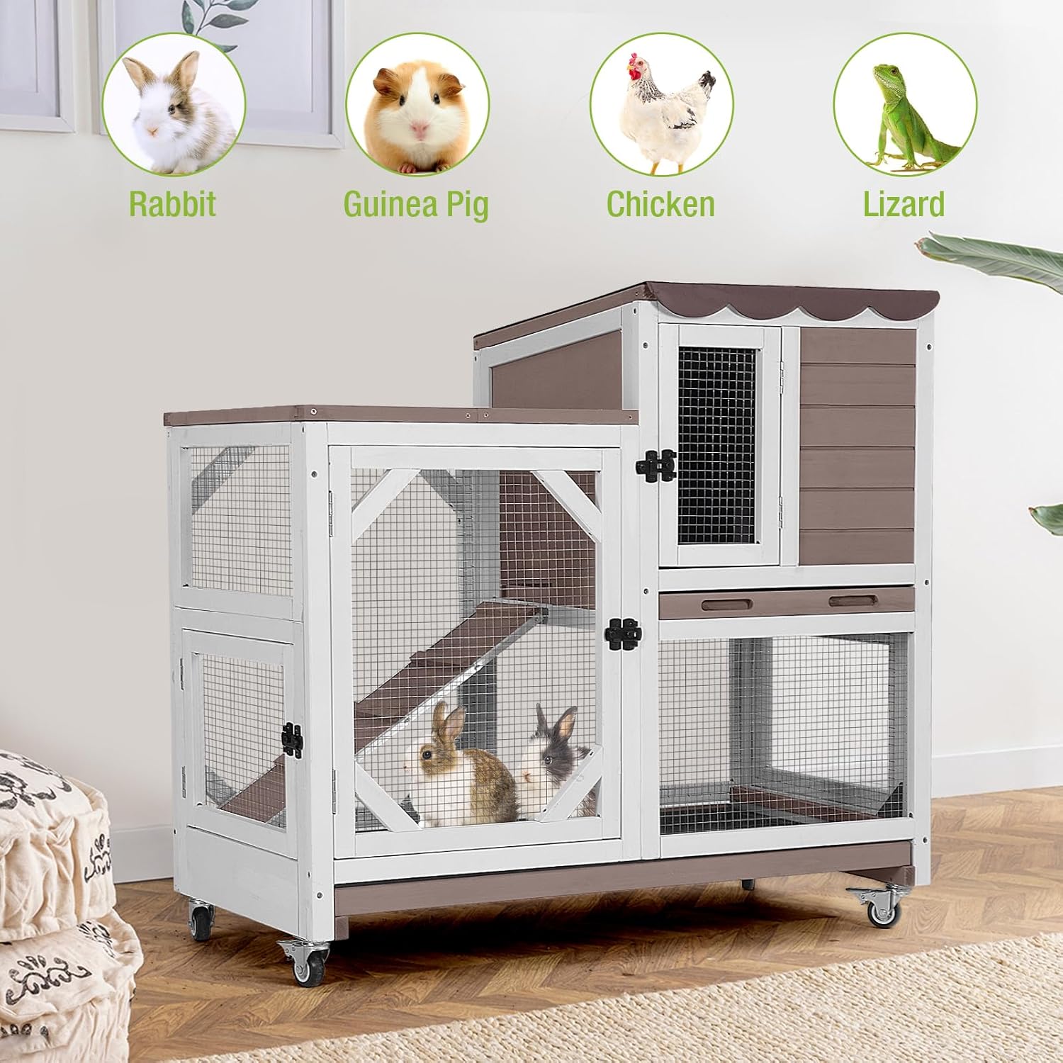 - Cozy Home for Pets: Our 2-story hutch, sized at 39.37’’L*22.04’’W*36.8’’H, is a spacious sanctuary for your small animals like guinea pigs, rabbits, or chicks, offering them a comfortable and secure place to play and rest