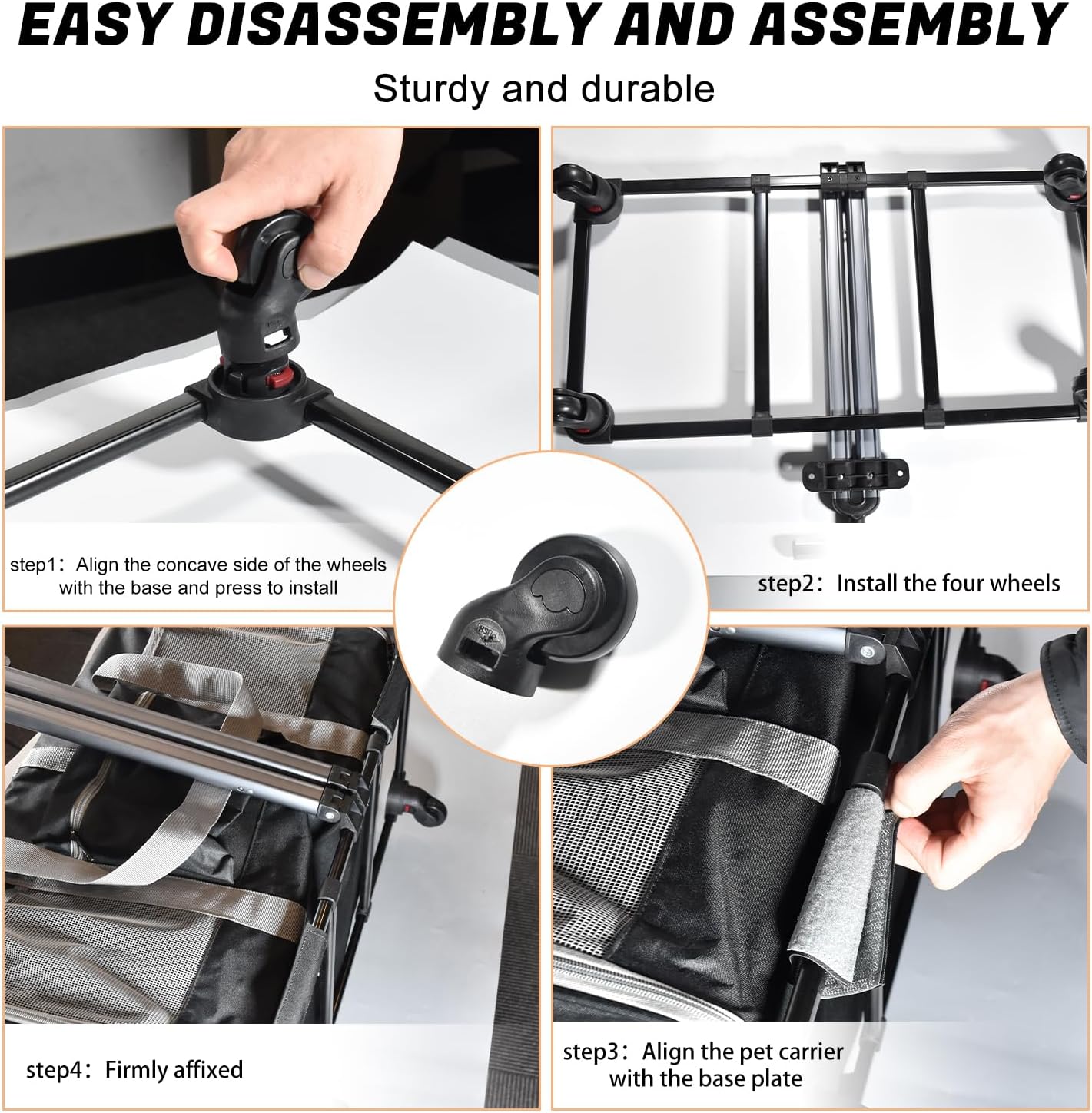 - NEWLY UPGRADED PLATFORM AND PULLEYS: The crossbar of the pet carrier with wheels is designed to look like a suitcase, use it as a duffel bag or handbag. With 4 high quality removable wheels that rotate 360° and a push-button locking handle that can be adjusted to different stages to suit pet owners of all sizes, you can effortlessly move in any direction through the streets, shopping malls, supermarkets, vet hospitals and more.
