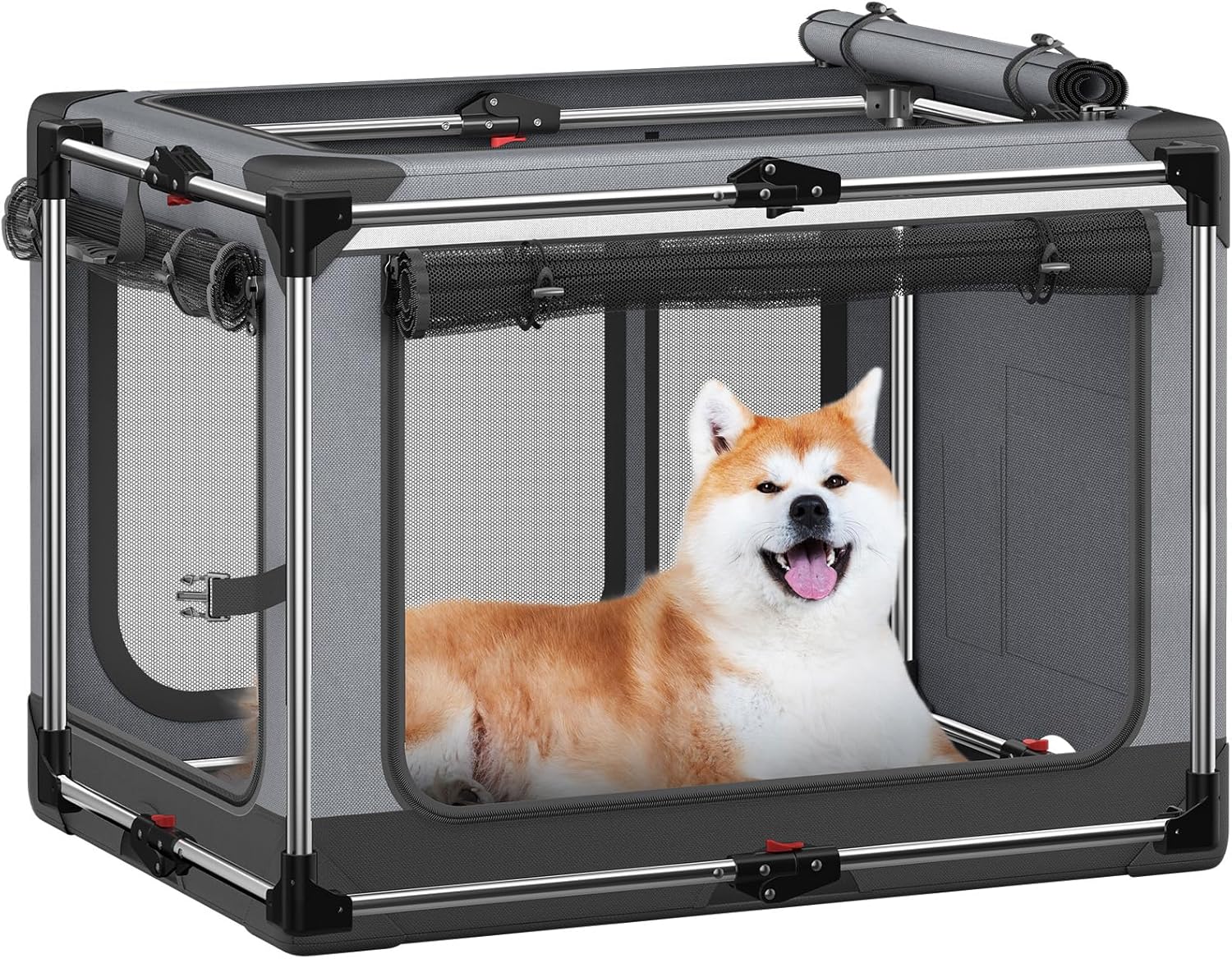 - Foldable & Portable Design: Easily folds flat in under a minute, making it perfect for travel and compact storage. Ideal dog cage for both indoor use and outdoor adventures with your furry friend