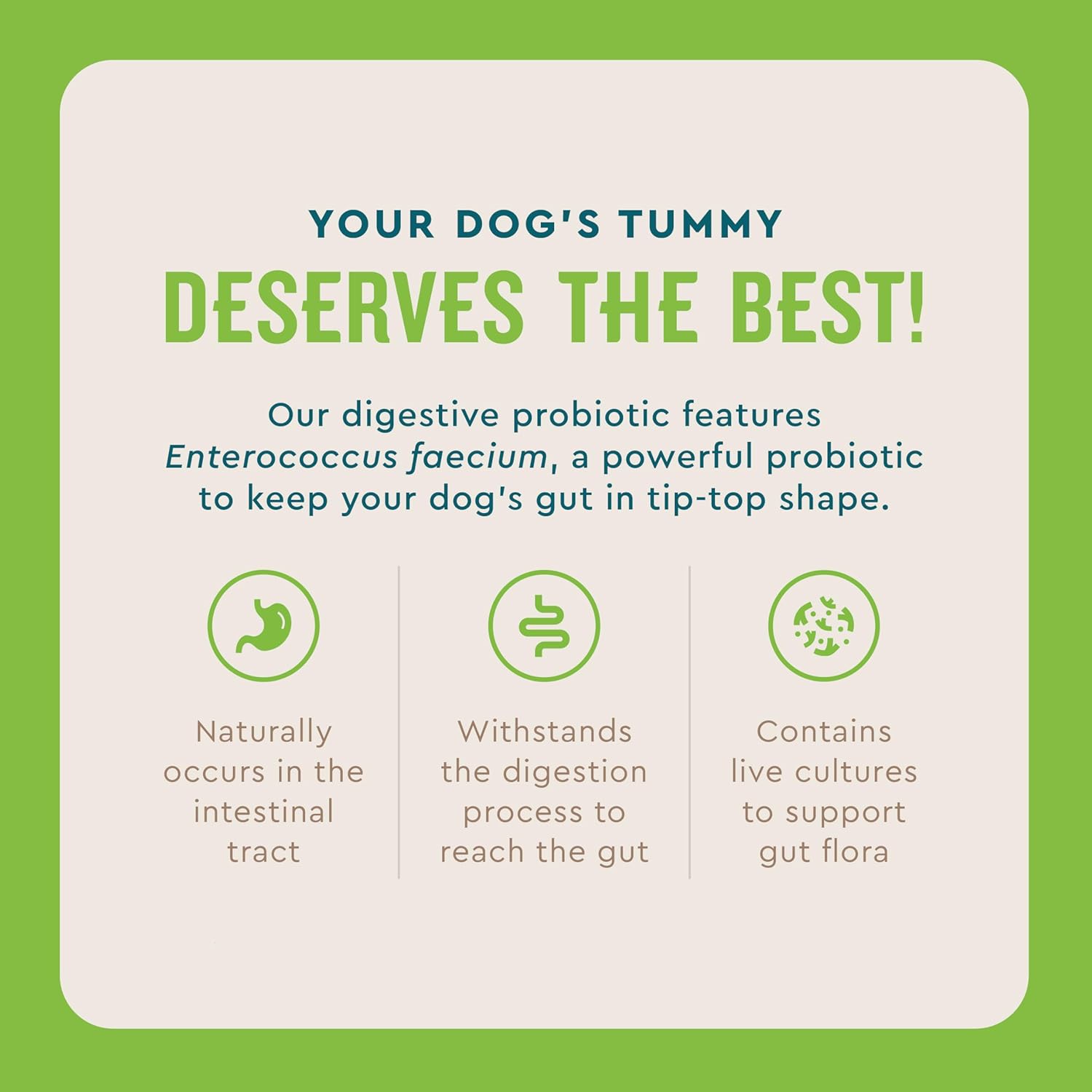 - Digestive Probiotic for Dogs: Ideal for dogs with occasional diarrhea, those on antibiotics, adjusting to new foods, or needing daily gut health support; Can be used as a daily health supplement for lasting support; Consult your veterinarian before using
