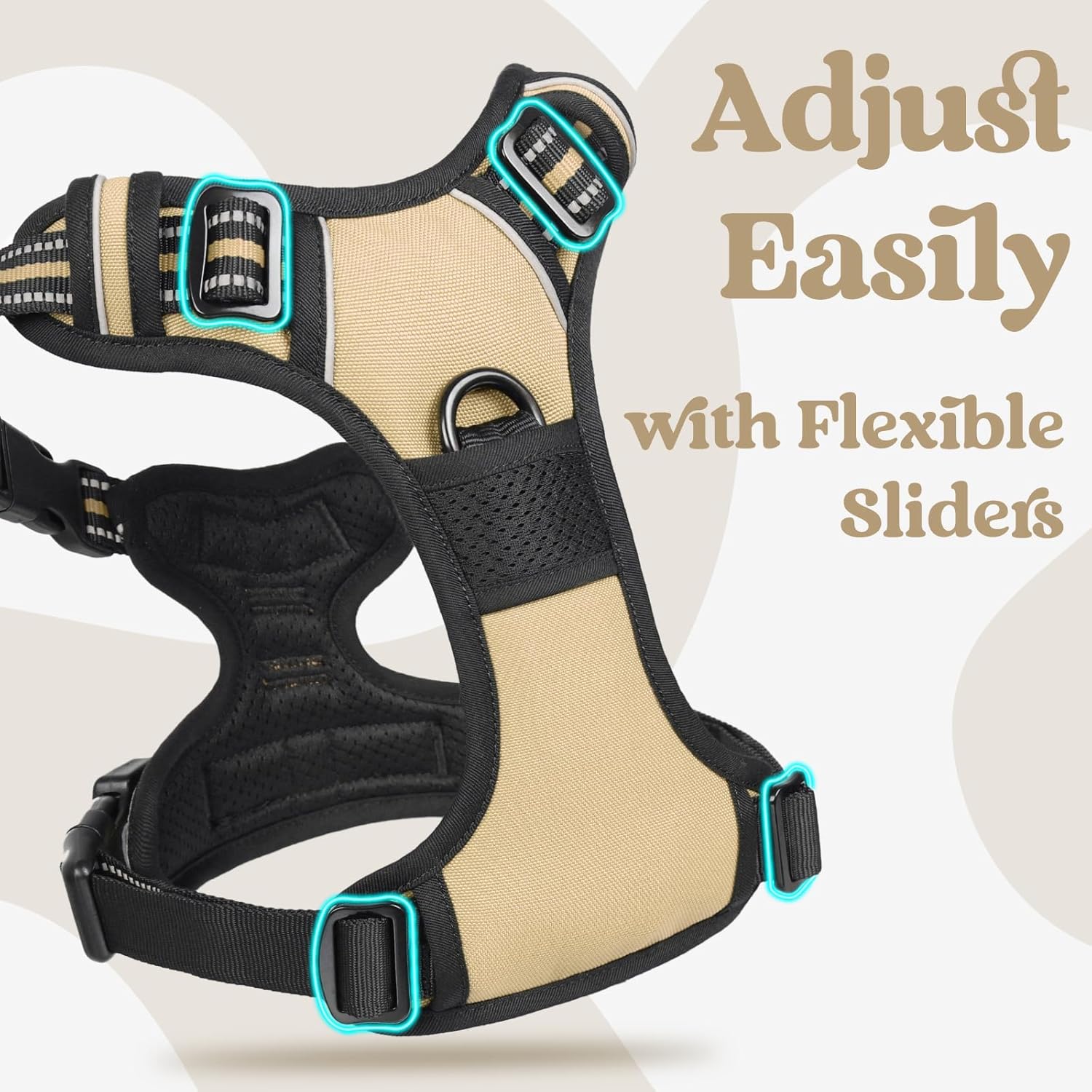 - Control in Multiple Ways: The no-pull dog harness has two metal leash attachment points for various conditions and may be used for a variety of activities like daily walking, jogging, running, trekking, hunting, and training. Furthermore, the ergonomic top handle may be handy for additional training support or carrying assistance