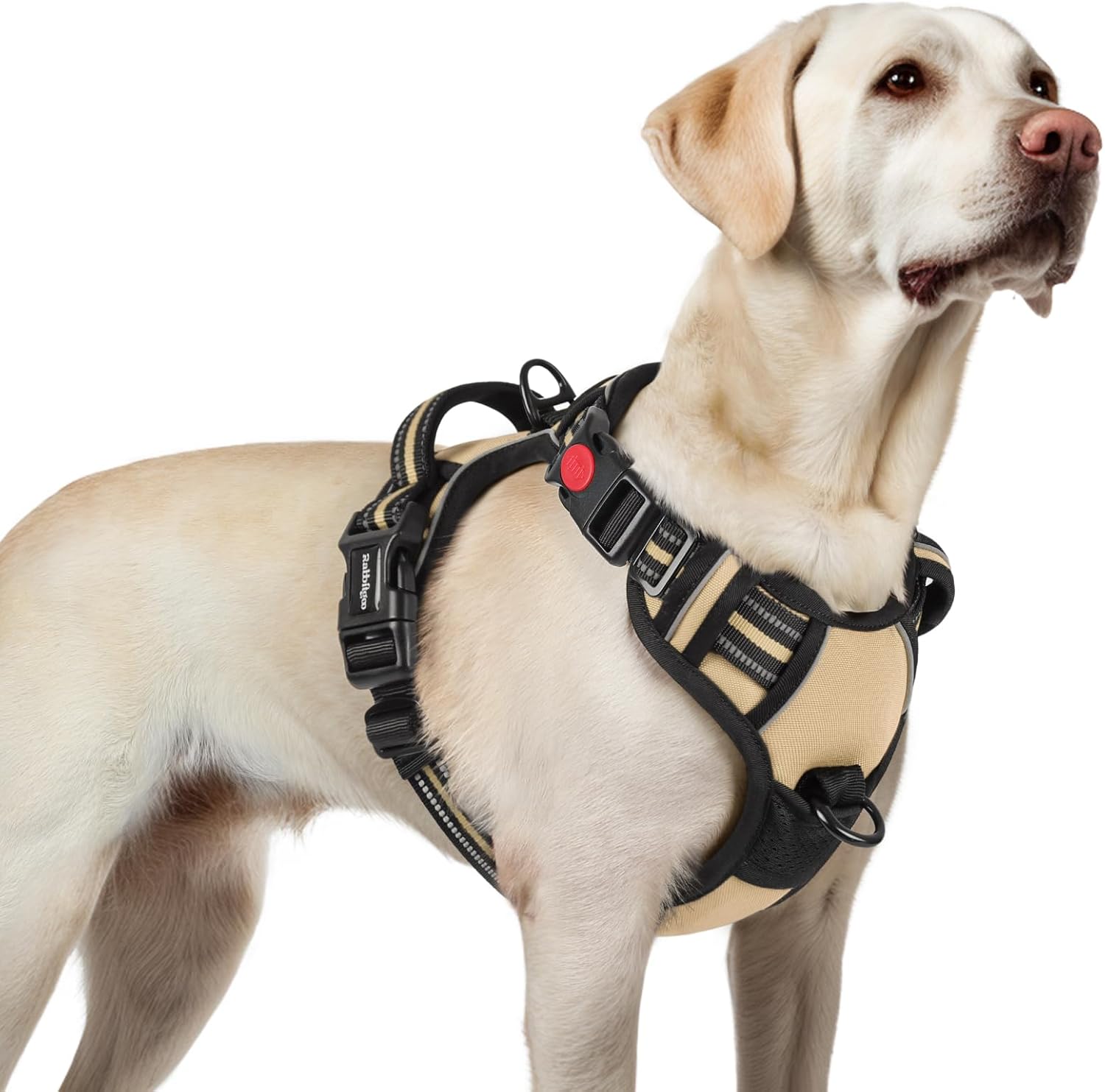- Control in Multiple Ways: The no-pull dog harness has two metal leash attachment points for various conditions and may be used for a variety of activities like daily walking, jogging, running, trekking, hunting, and training. Furthermore, the ergonomic top handle may be handy for additional training support or carrying assistance