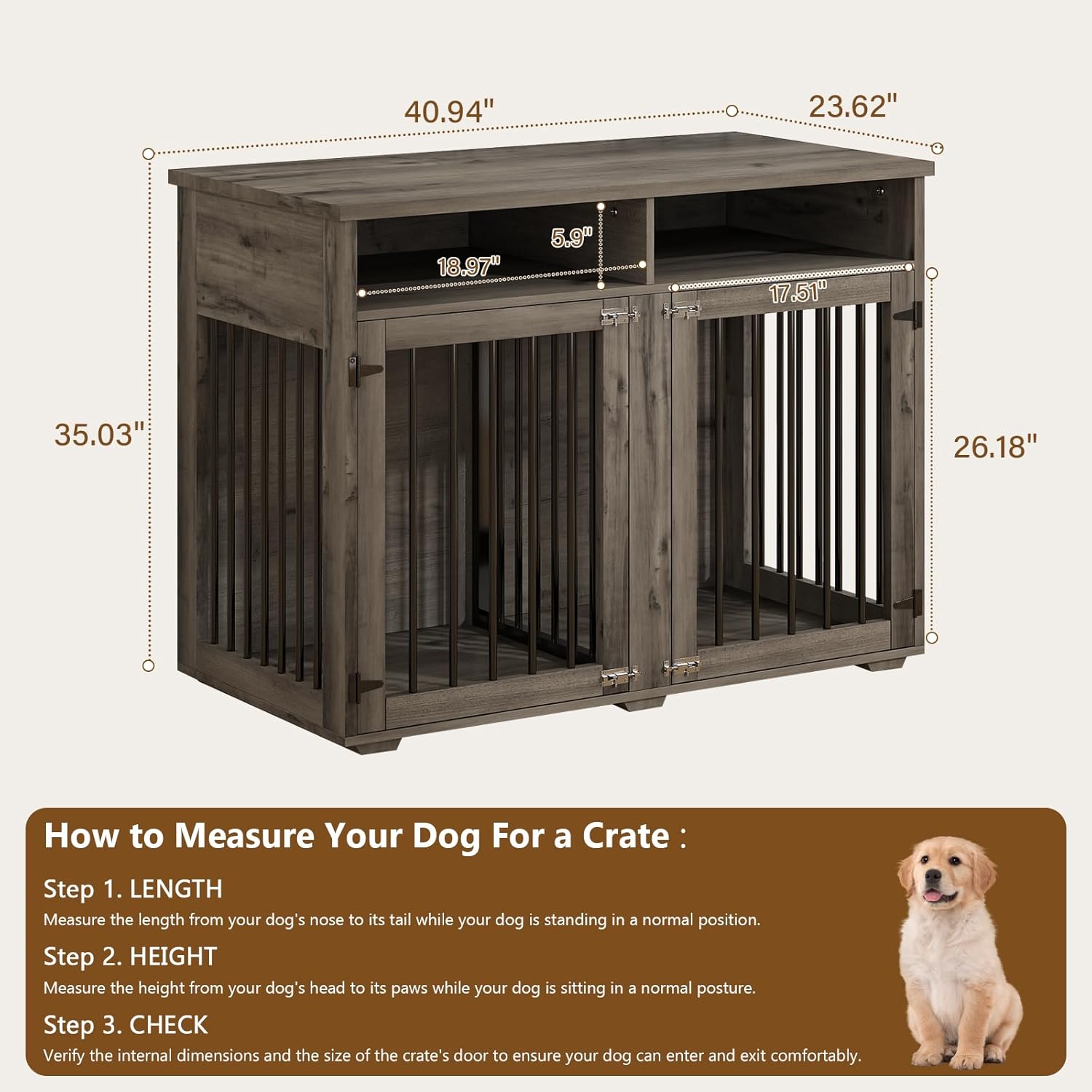 - [Storage Shelf Design] This 2 dog crate seamlessly fits various home decors. Its wide desktop and open storage shelves easily organize your pup's treats and toys, keeping pet items tidy