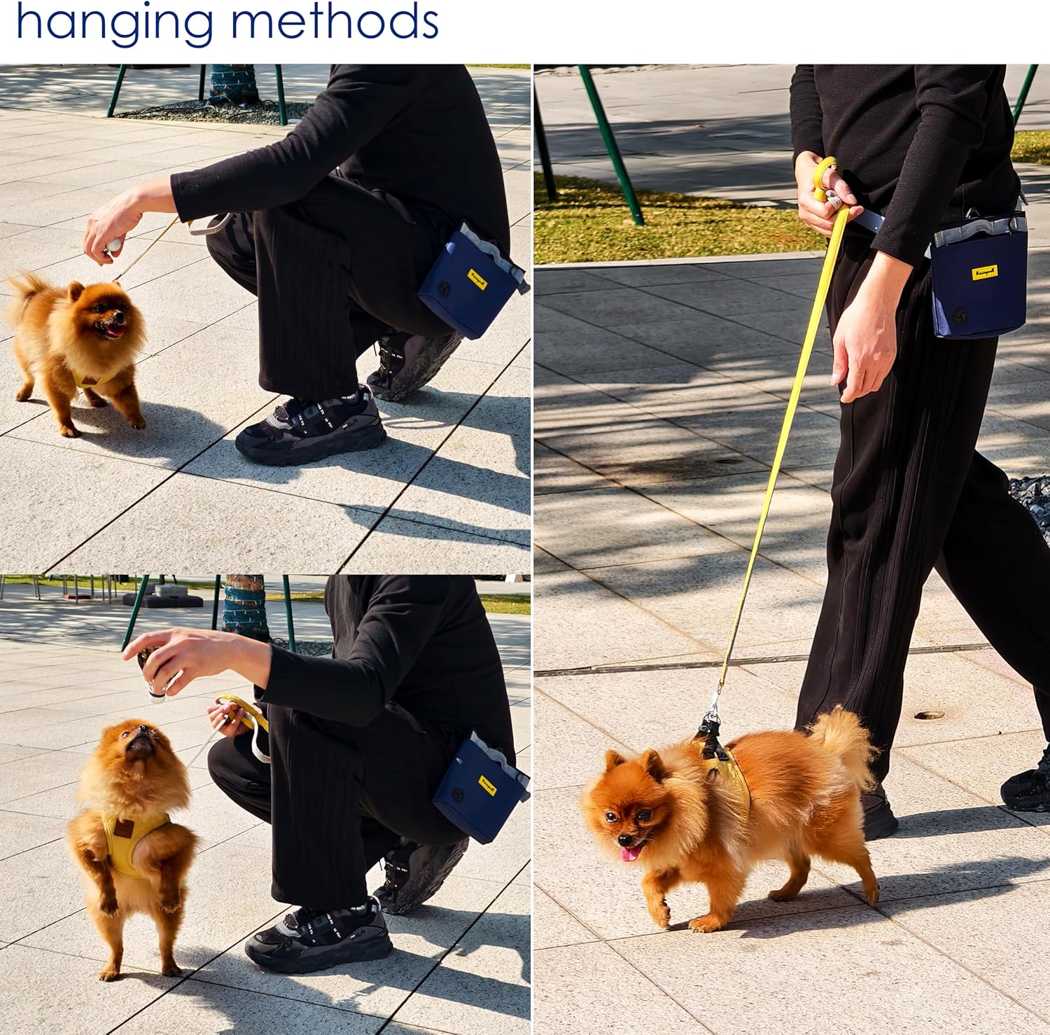 • 3.Enhanced Magnetic Closure: The bag features two sets of powerful magnets at the opening, ensuring automatic closure and preventing food from spilling, even when bending over. A convenient pull tab allows for one-handed opening when you need access to the contents of your dog treat pouch. The strong magnets make it a perfect solution for training and walking, ensuring your treats stay secure in the dog treats holder for training.