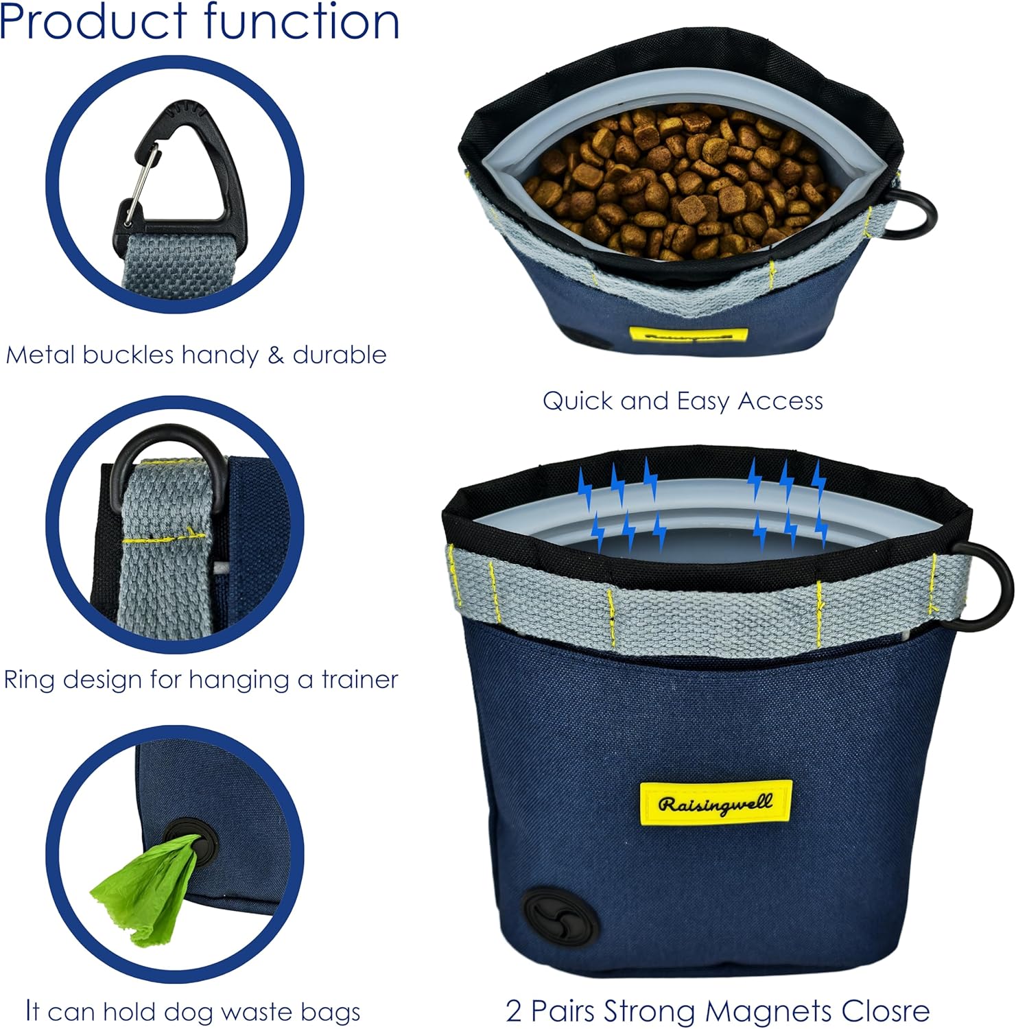 • 5.Durable Tech Material: Raisingwell's dog treat training pouch is made from durable, washable, and non-toxic fabric. Notably, its waterproof lining solves the problem of difficult-to-clean interiors of training bags, making it a great choice for your dog treat bag or dog treat fanny pack.