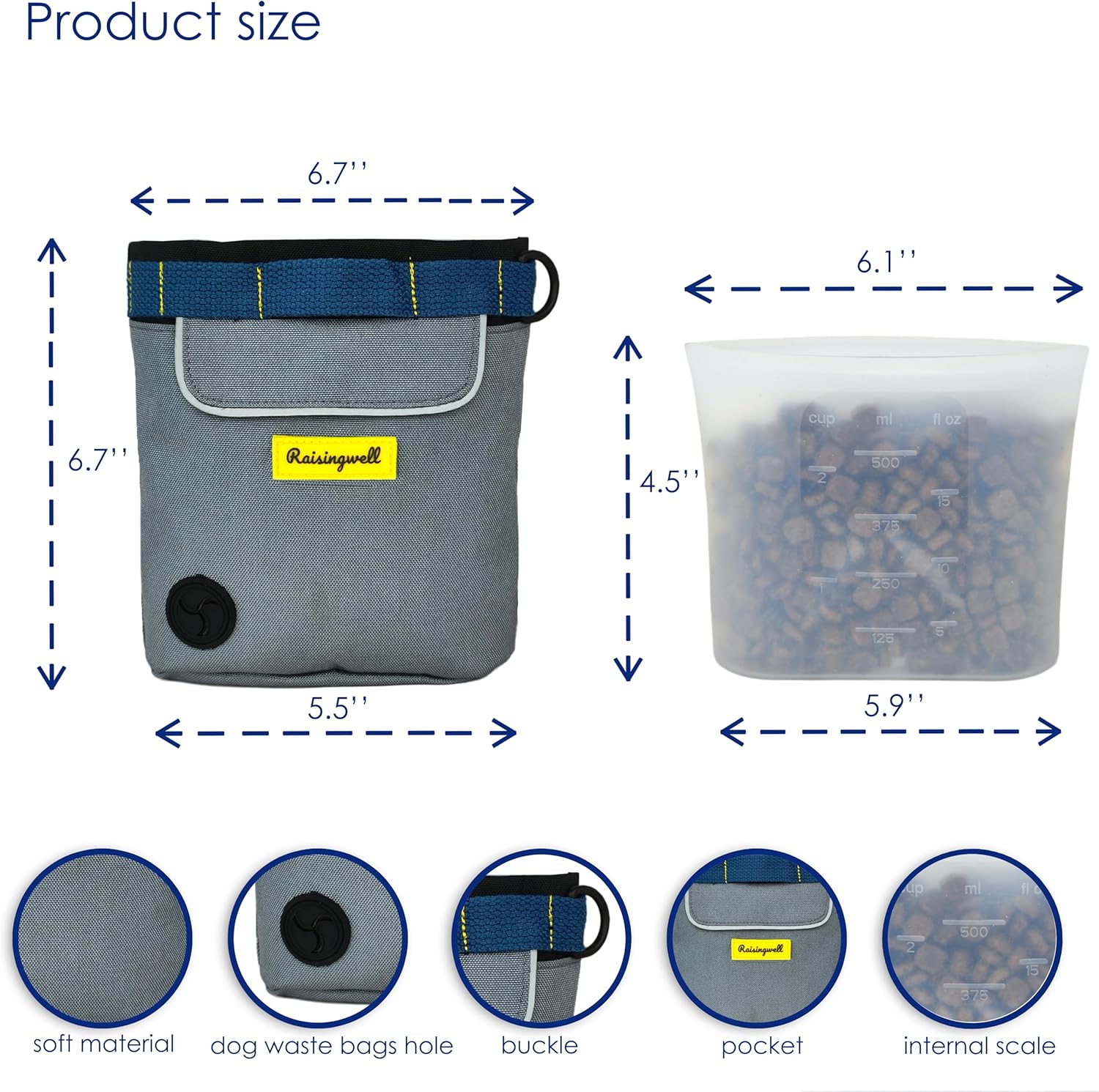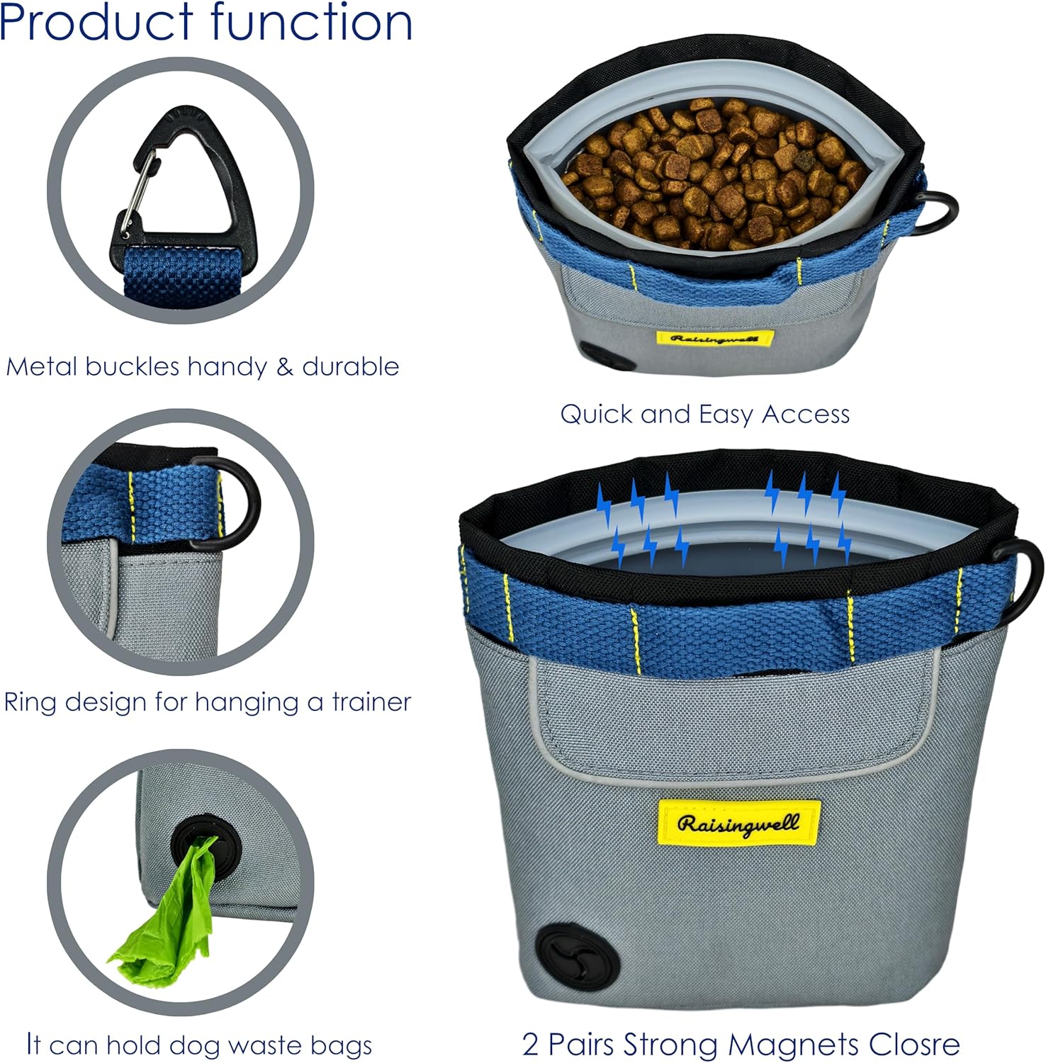 • 5.Durable Tech Material: Raisingwell's dog treat training pouch is made from durable, washable, and non-toxic fabric. Notably, its waterproof lining solves the problem of difficult-to-clean interiors of training bags, making it a great choice for your dog treat bag or dog treat fanny pack.