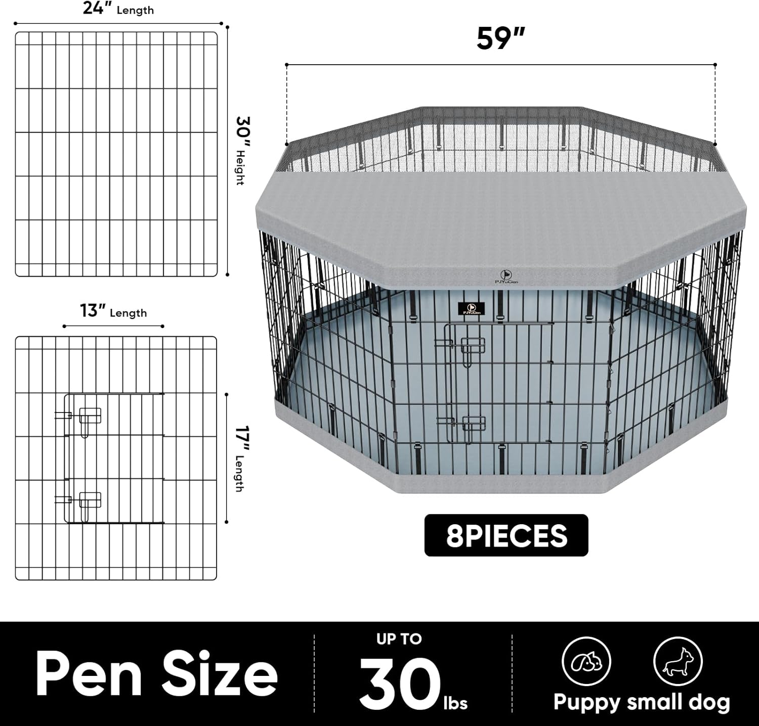 - Two Colors, Four Sizes: Precision Fit Available in classic black and grey, our dog playpen comes in four heights (24"H, 30"H, 36"H, 42"H) with 24"W-wide panels. Whether you have a small or large dog, there’s a perfect size to ensure your pet enjoys a safe, customized space