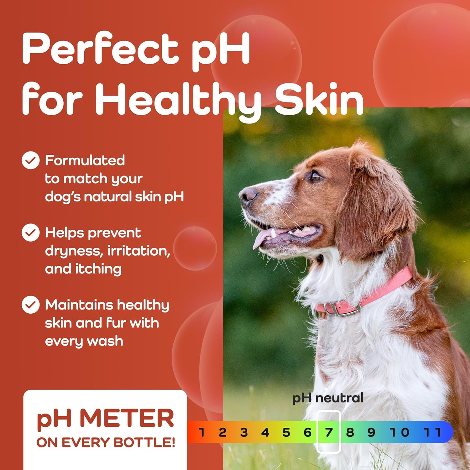 - pH-Balanced for Skin Health – Featuring a built-in pH meter right on the bottle, this shampoo for dogs ensures every wash is balanced for skin wellness. Proper pH supports the natural skin barrier and makes this a trusted choice for itchy dog shampoo needs and long-term coat care.