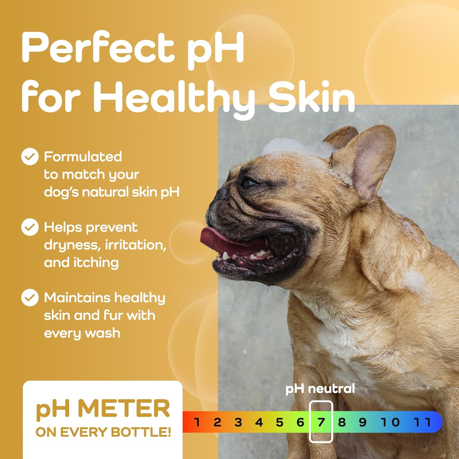 - pH-Balanced for Skin Health – Featuring a built-in pH meter right on the bottle, this shampoo for dogs ensures every wash is balanced for skin wellness. Proper pH supports the natural skin barrier and makes this a trusted choice for itchy dog shampoo needs and long-term coat care.