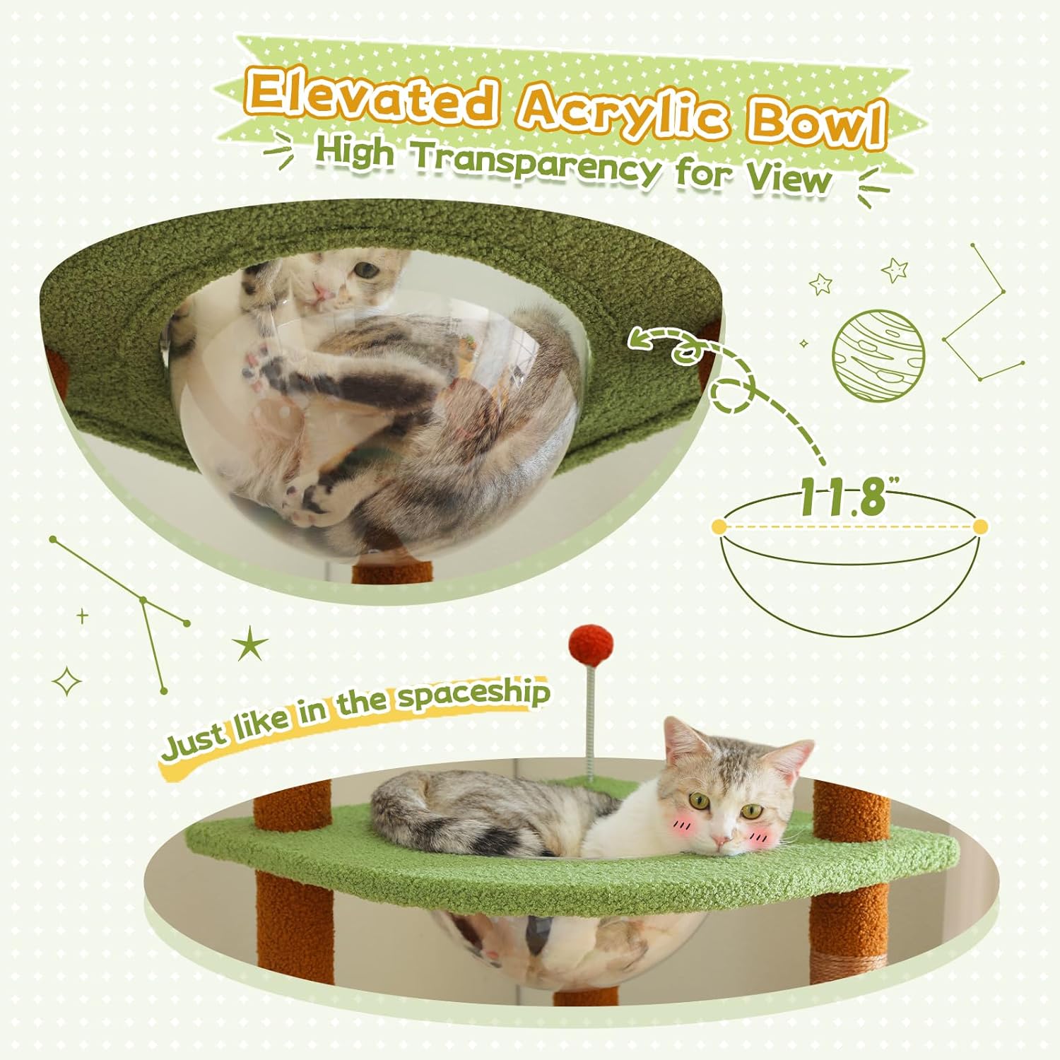 • IDEAL REST AREA: No matter your cats need to lounge in the cradle, have a private nap in the cozy condo, cuddle in the plush hammock or just take a break on the perches, they could find their exclusive zone in no time. The elevated acrylic nest is not only a fashionable bed for your furry friends, but also an observation deck to enjoy the superb view out of the window