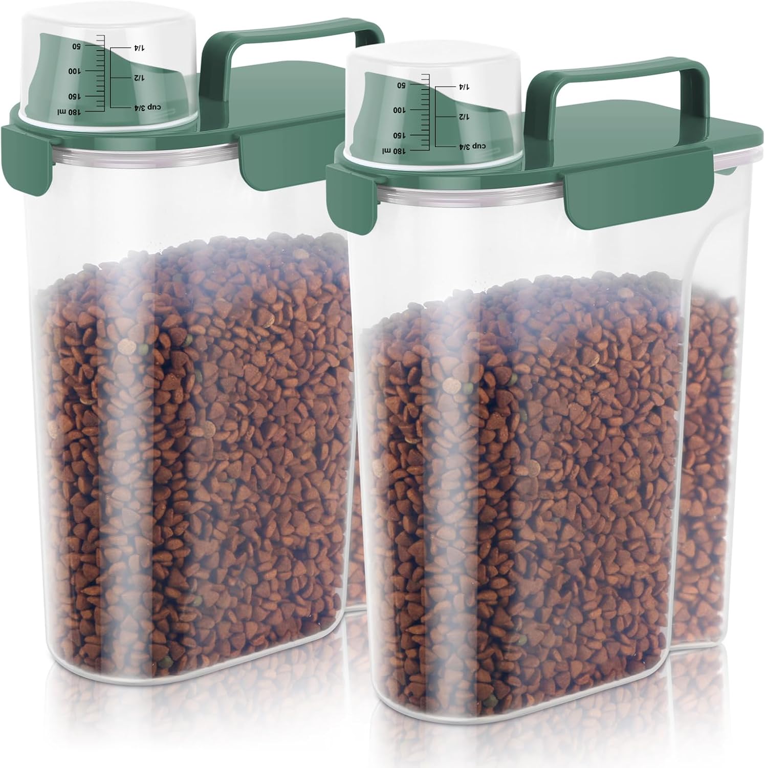 - MATERIAL: reusable and practical pet food storage container is made of BPA-free food-grade plastic.Safe for storing human food or pet food.Durable enough,long-lasting,easy to clean,transparent body,food can be seen at a glance.