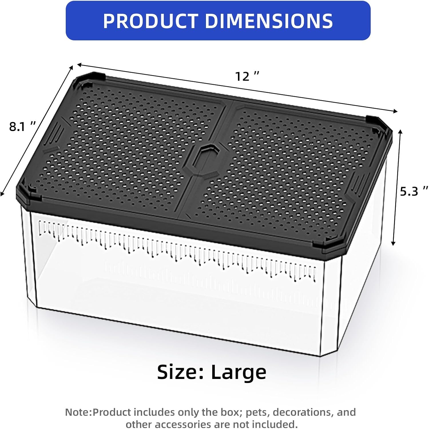 - 【Excellent Ventilation】Precision-designed air vents on the top and sides ensure ample airflow, keeping the enclosure’s air fresh and helping your pets thrive in a healthy environment, whether in a reptile terrarium, frog terrarium, or hermit crab tank.