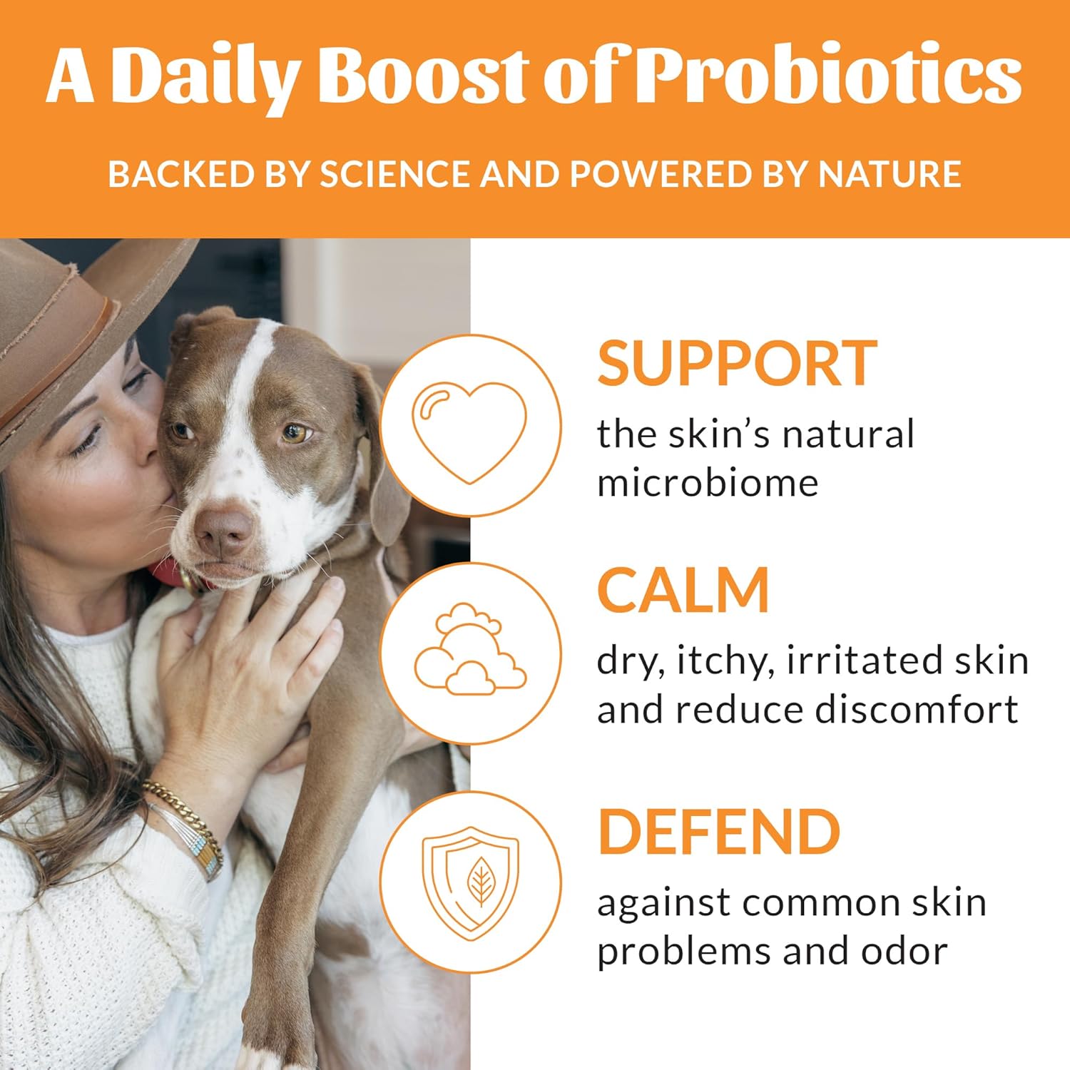 • Probiotic Formula- Each bottle contains topical probiotics that help support a healthy microbiome to defend against common skin problems such as itching, odor, dryness, dandruff, hot spots, and excessive shedding.
