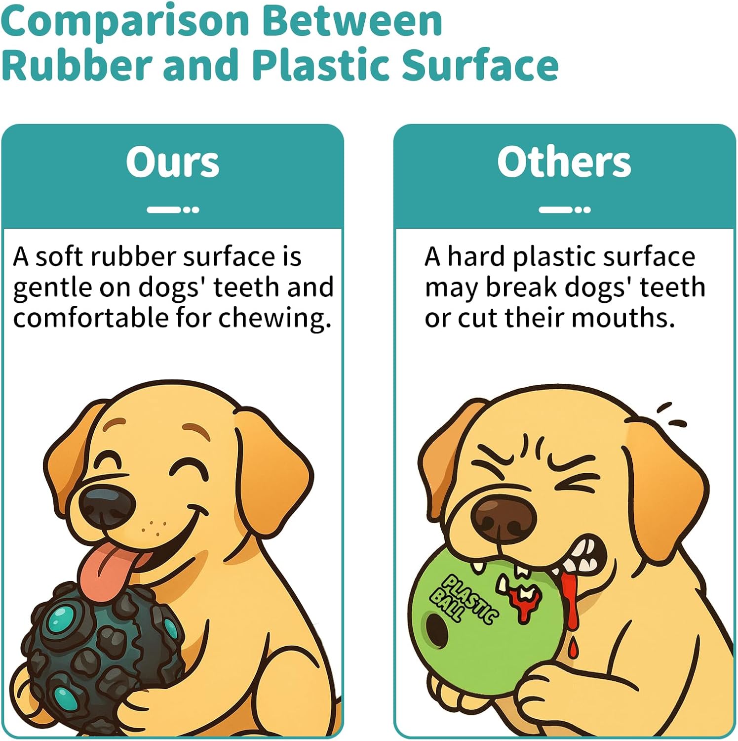 • Teeth Cleaning for Large Dogs - The outer rubber surface is durable yet remains soft and gentle on dogs' teeth and comfortable for chewing. By comparison, some popular squeaky balls use hard plastic surfaces, which may break dogs' teeth or cut their mouths. Our squeaky ball features meteorite-shaped nubs on its rubber surface, designed to help clean teeth and remove food stuck. You can also apply toothpaste on the JoyBruko dog ball to help furries keep dental health!