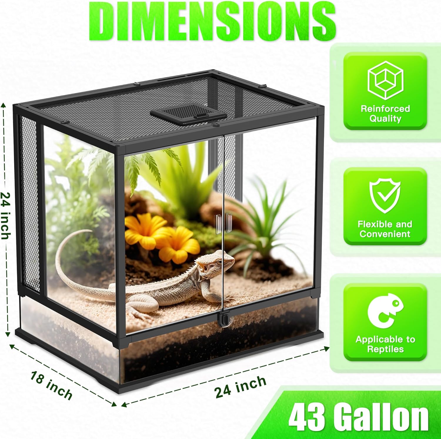 - 【Customizable Ventilation and Flexibility】 Replaceable mesh/glass side panels enable tailored airflow and humidity control, allowing adjustments based on seasonal changes or specific pet needs. Create the ideal habitat for your pets with ease!