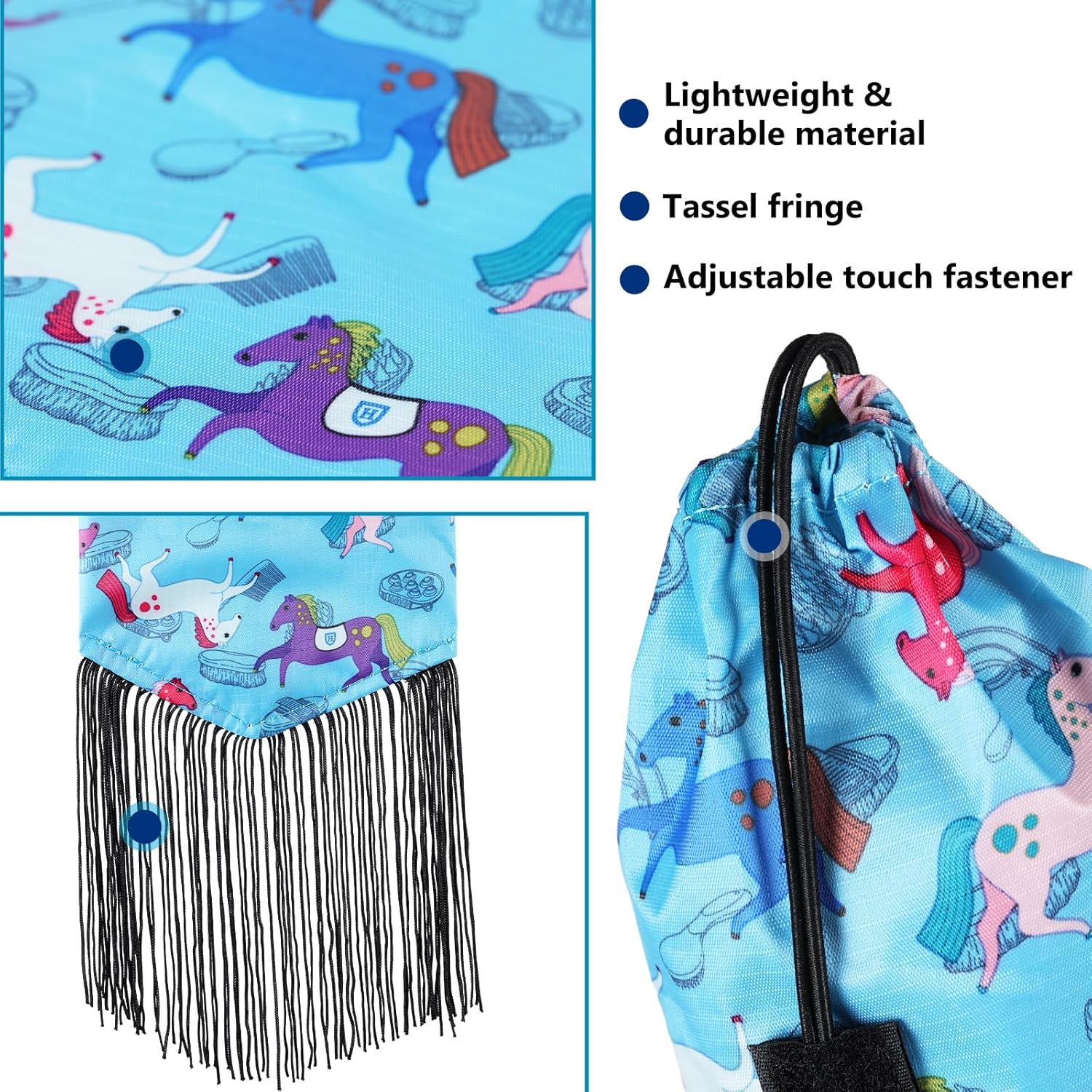 - WATER-REPELLENT & EASILY MAINTAINED: This lightweight tail bag is machine washable but hand wash is recommended to avoid the touch fastener deteriorating the tassels. The horse’s tail can be kept clean, tangle-free, and lasts in all weather conditions.