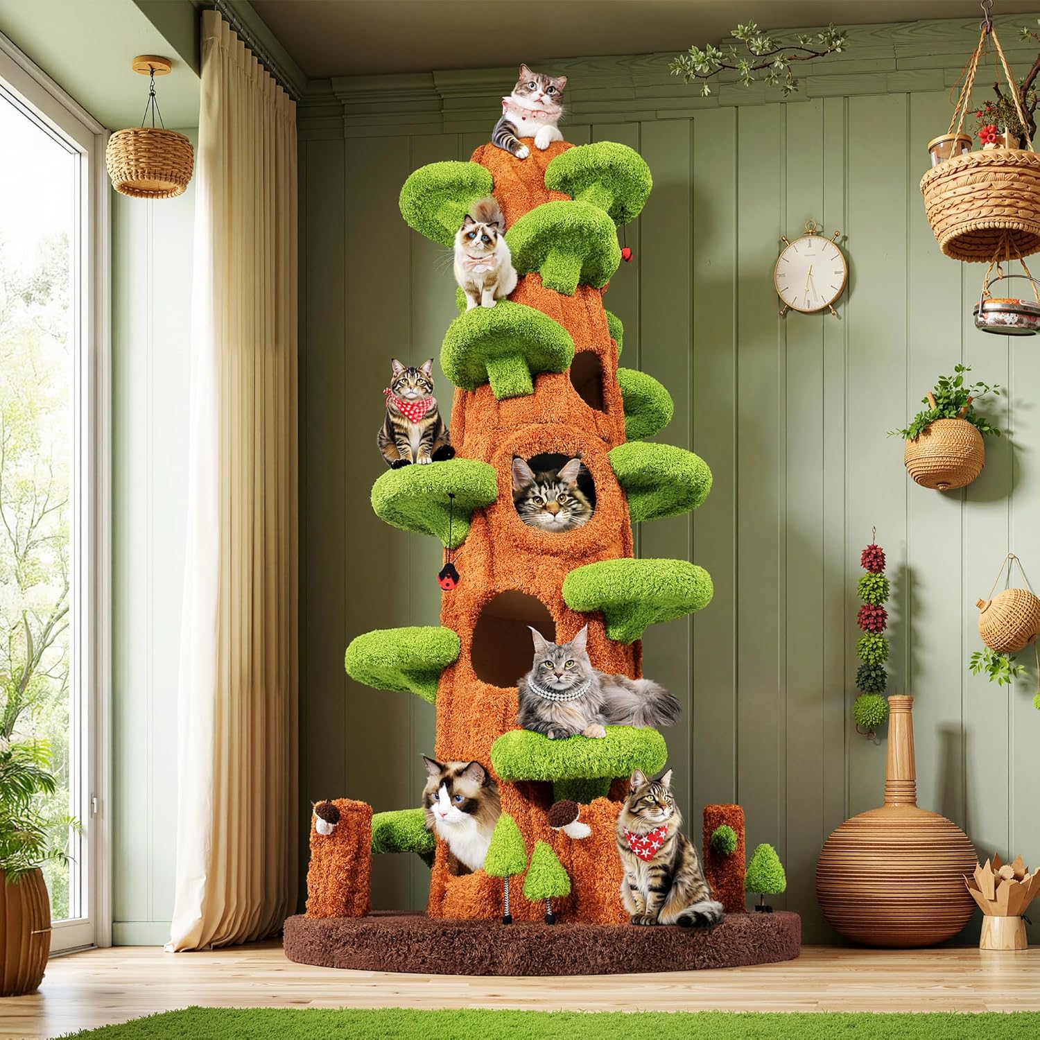 • 【Spacious & Multi-Level Design】This Super Large Cat Tree offers a towering structure with multiple levels, ramps, and platforms, providing your cats with plenty of room to climb, explore, and jump. It's perfect for cats that love to perch up high or venture to new heights in search of adventure.