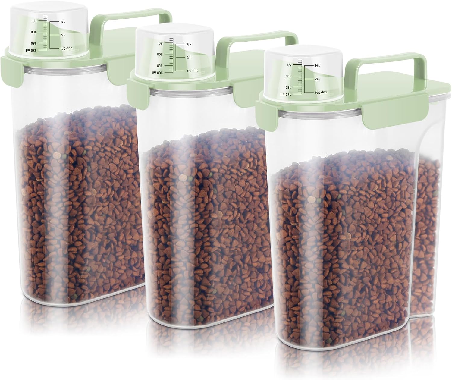- WHAT YOU GET ? The dog food storage container comes with a 1-pack airtight pet food storage container with a clear measuring cup and an upgraded large spout for easy pouring of pet food at any time. This dog food storage containers can be a gift The perfect gift for any home.