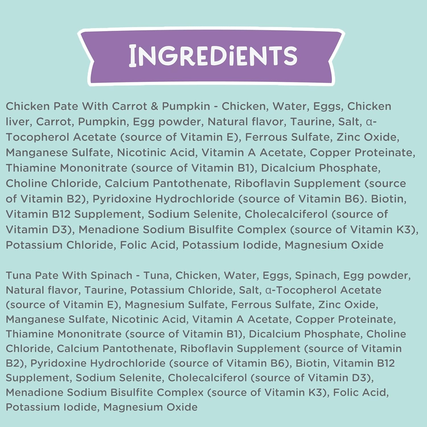 • GRAIN FREE & NON-GMO: Our pate tuna, carrot, & salmon is prepared without any grains, artificial additives, or by-products, as our goal is to feed cats the way nature intended. We always source wholesome ingredients to promote optimal health and nutrition