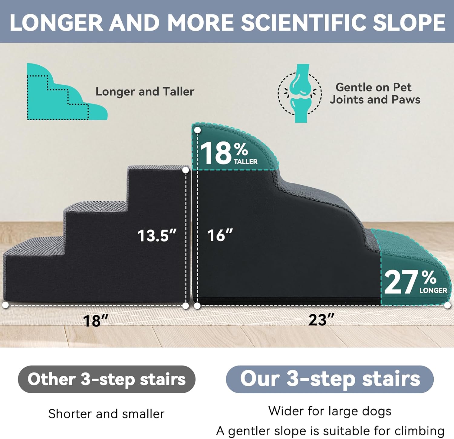 - Multi Sizes Fit Every Need: Zerbuger foam dog stair is not suitable for large dogs, please use it for pets under 50lbs! 3-steps are suitable for chairs and couches up to 20inch, 4-steps are suitable for high sofas, beds and window up to 25inch. Please confirm whether the size is suitable for your love pet first.