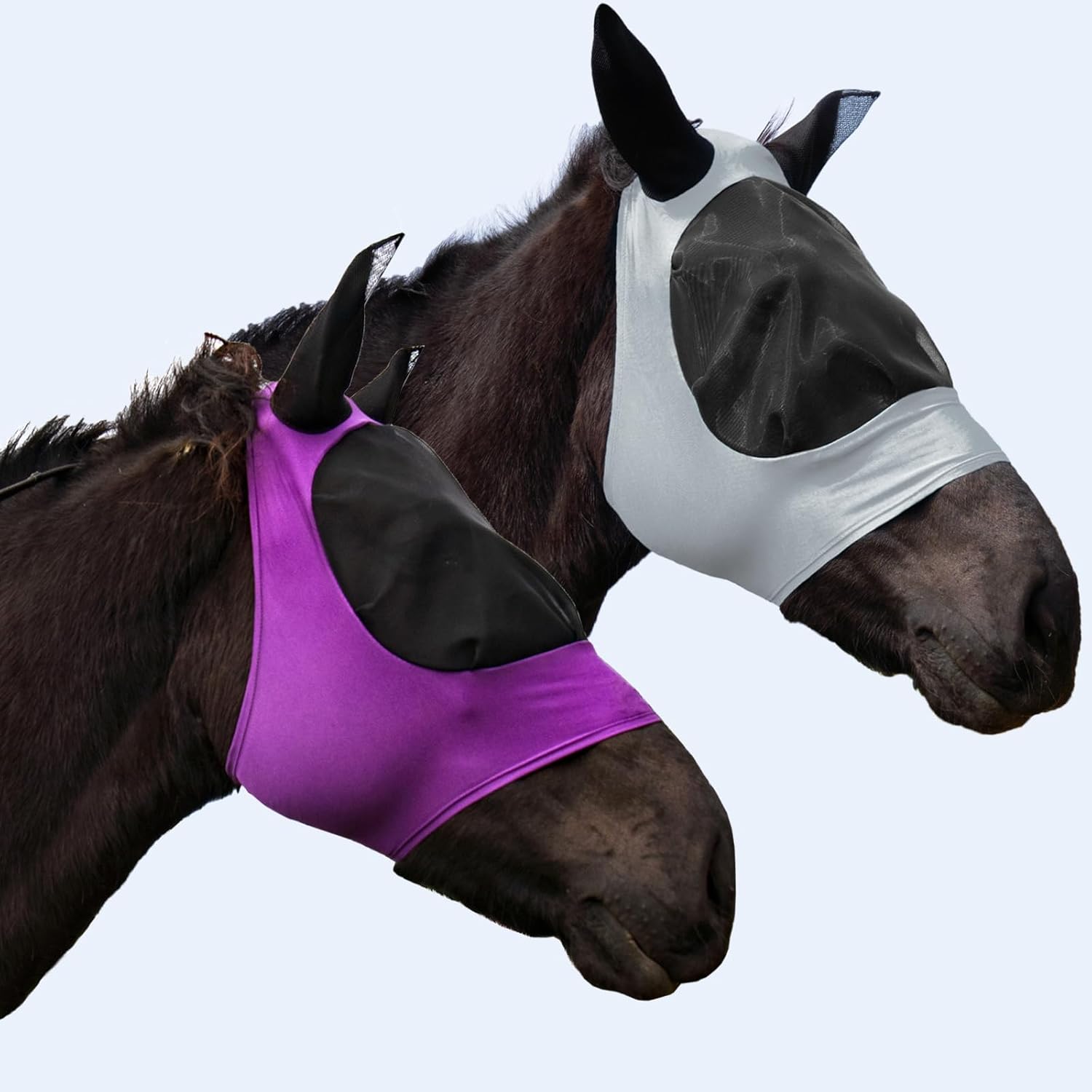 2 Piece Horse Fly Mask with Ears, Comfortable Fit Stretch Fabric Big Eye Space Soft Breathable with UV Protection for Full Horses (Purple-Gray)