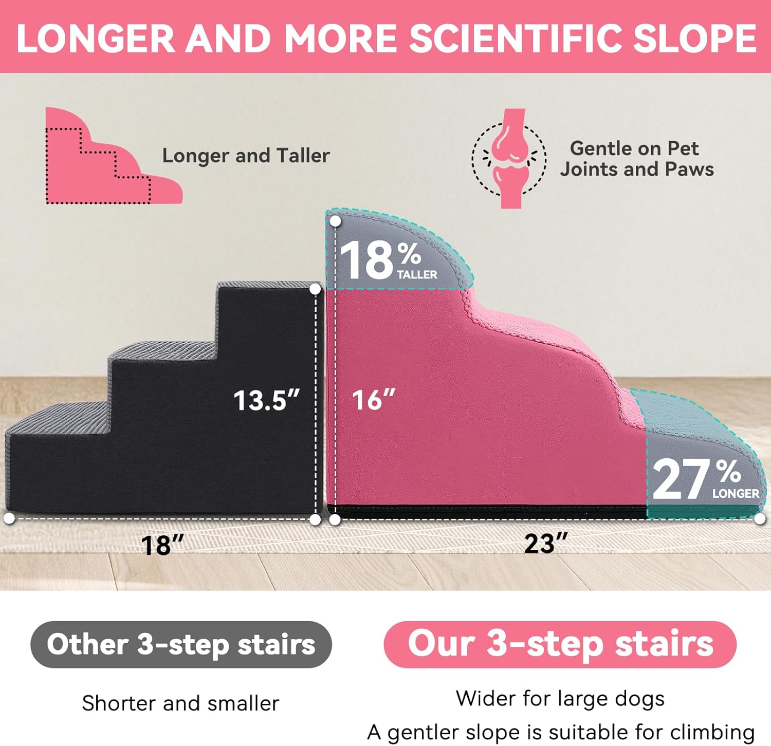 - Multi Sizes Fit Every Need: Zerbuger foam dog stair is not suitable for large dogs, please use it for pets under 50lbs! 3-steps are suitable for chairs and couches up to 20inch, 4-steps are suitable for high sofas, beds and window up to 25inch. Please confirm whether the size is suitable for your love pet first.