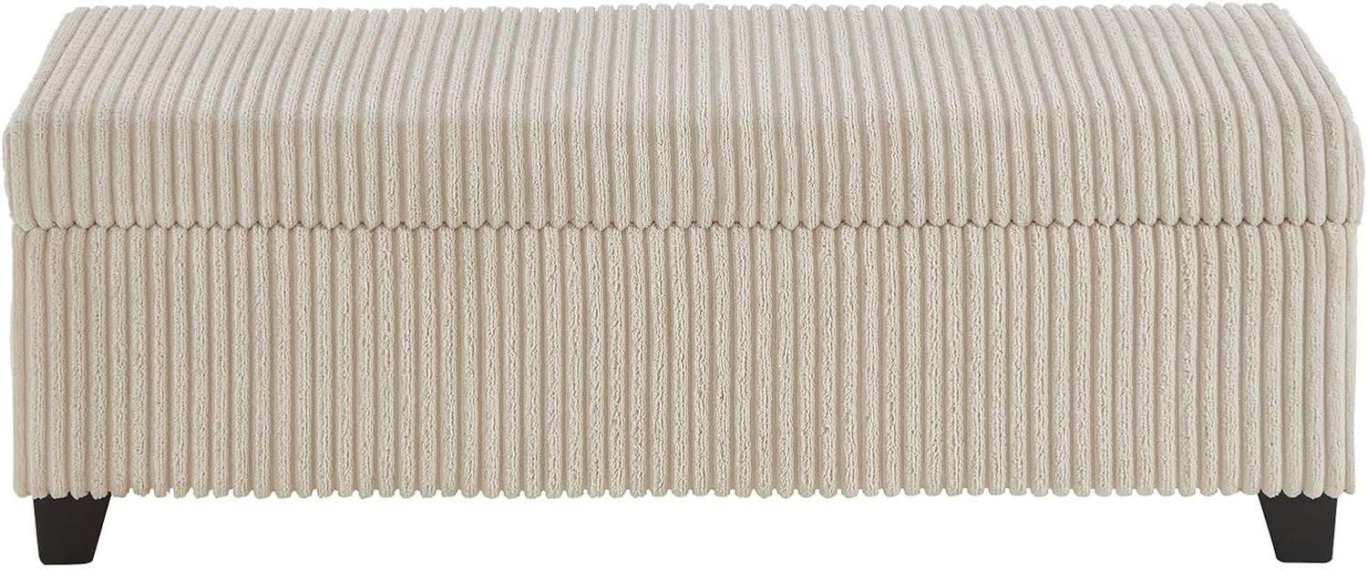 - Elegant Corduroy Fabric: Upholstered in vibrant beige corduroy fabric, this end of bed bench adds a bold and modern statement to your living space while offering a soft and cozy feel.